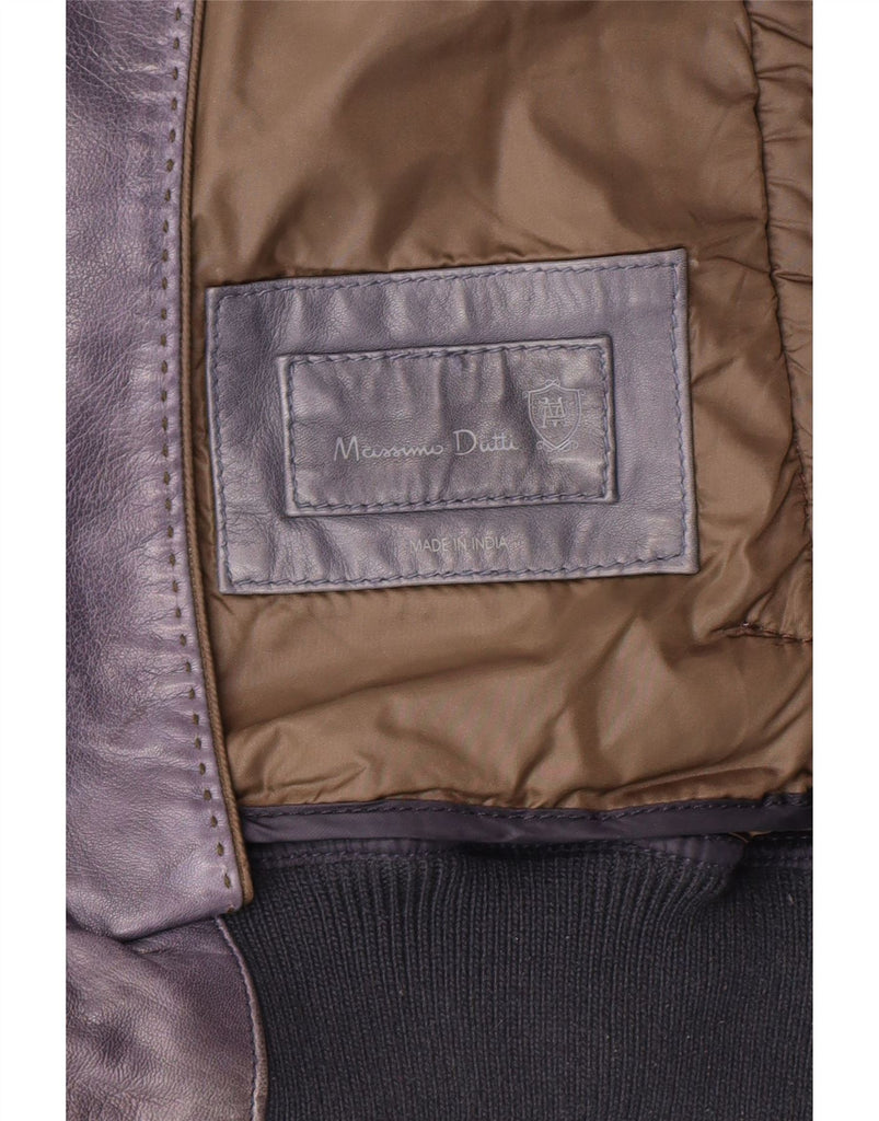 MASSIMO DUTTI Mens Leather Jacket UK 42 XL Navy Blue