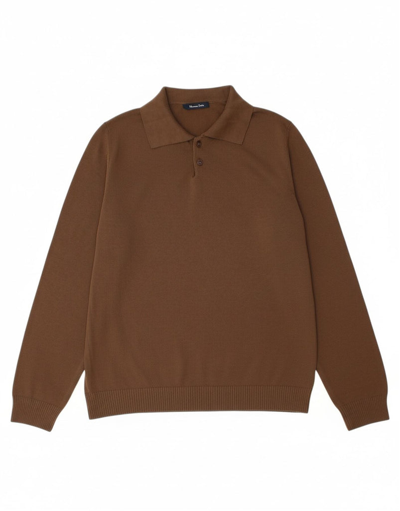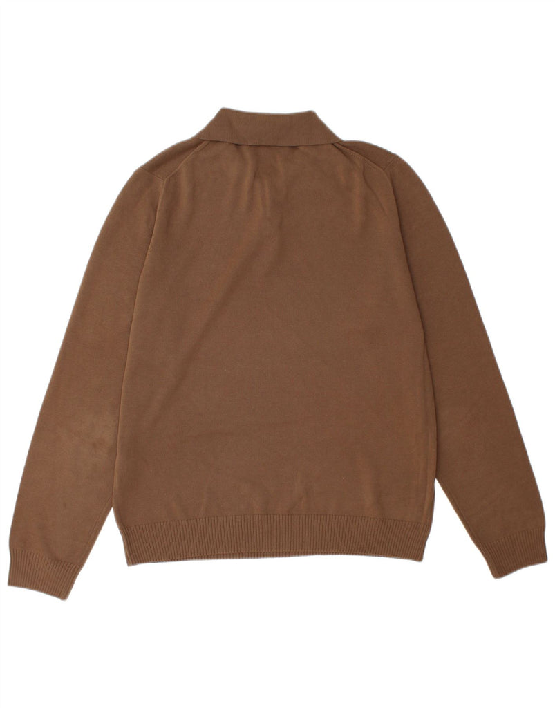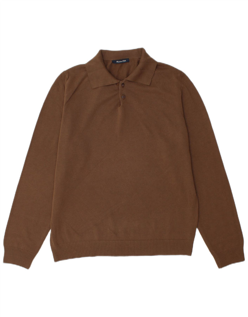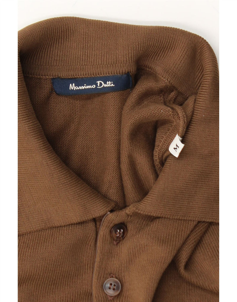 MASSIMO DUTTI Mens Polo Neck Jumper Sweater Medium Brown Cotton