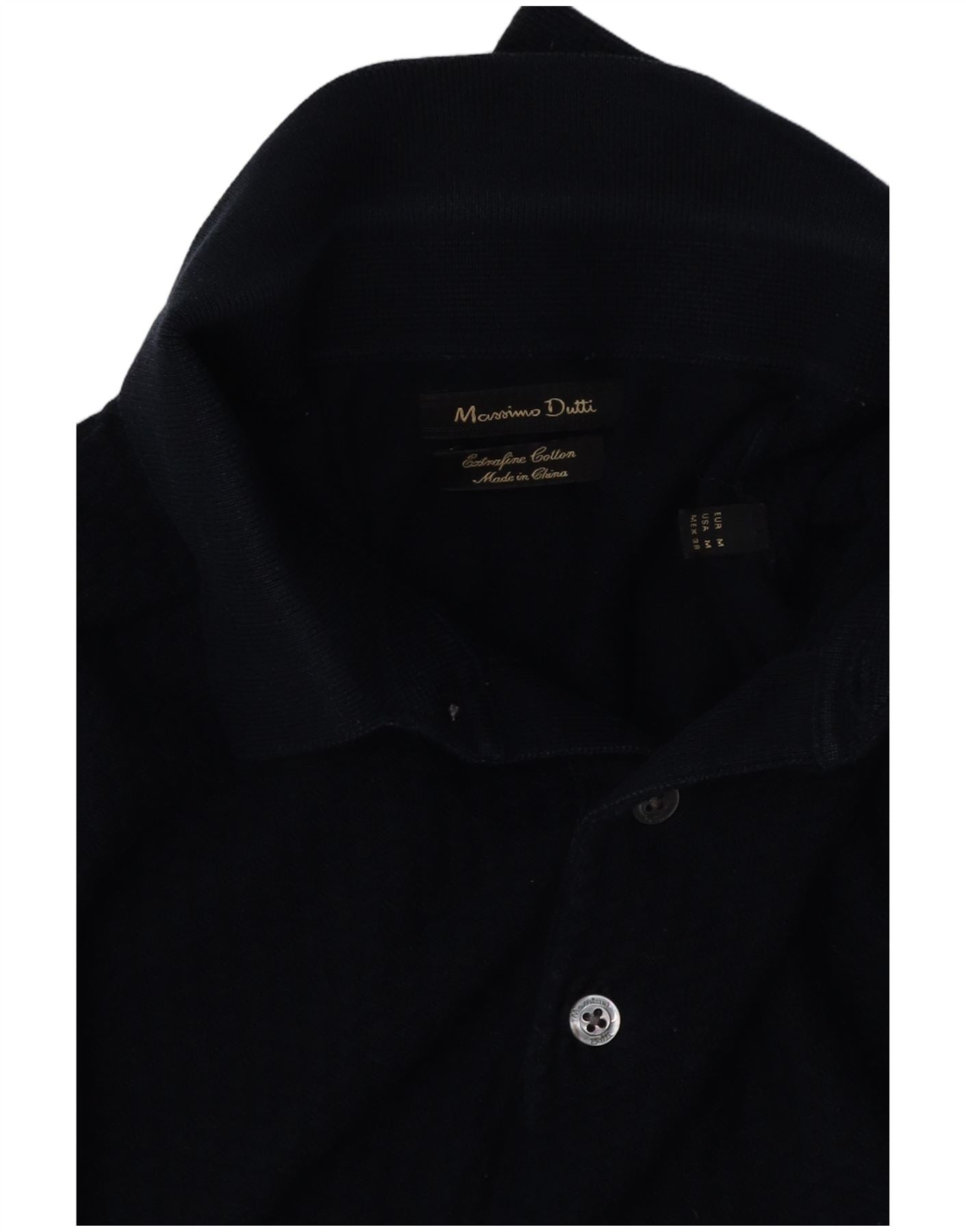 MASSIMO DUTTI Mens Polo Neck Jumper Sweater Medium Navy Blue Cotton