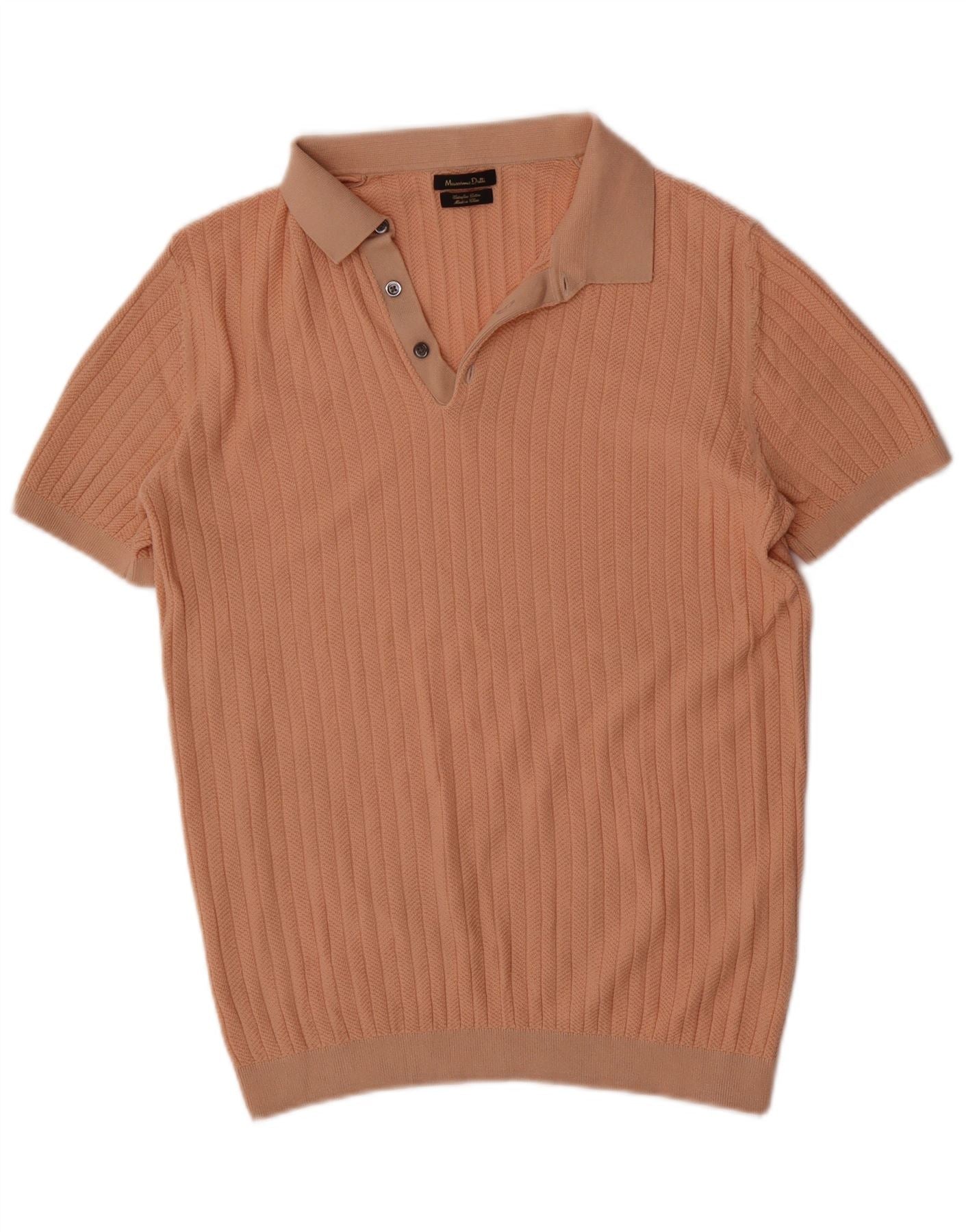 MASSIMO DUTTI Mens Short Sleeve Polo Neck Jumper Sweater Medium Pink