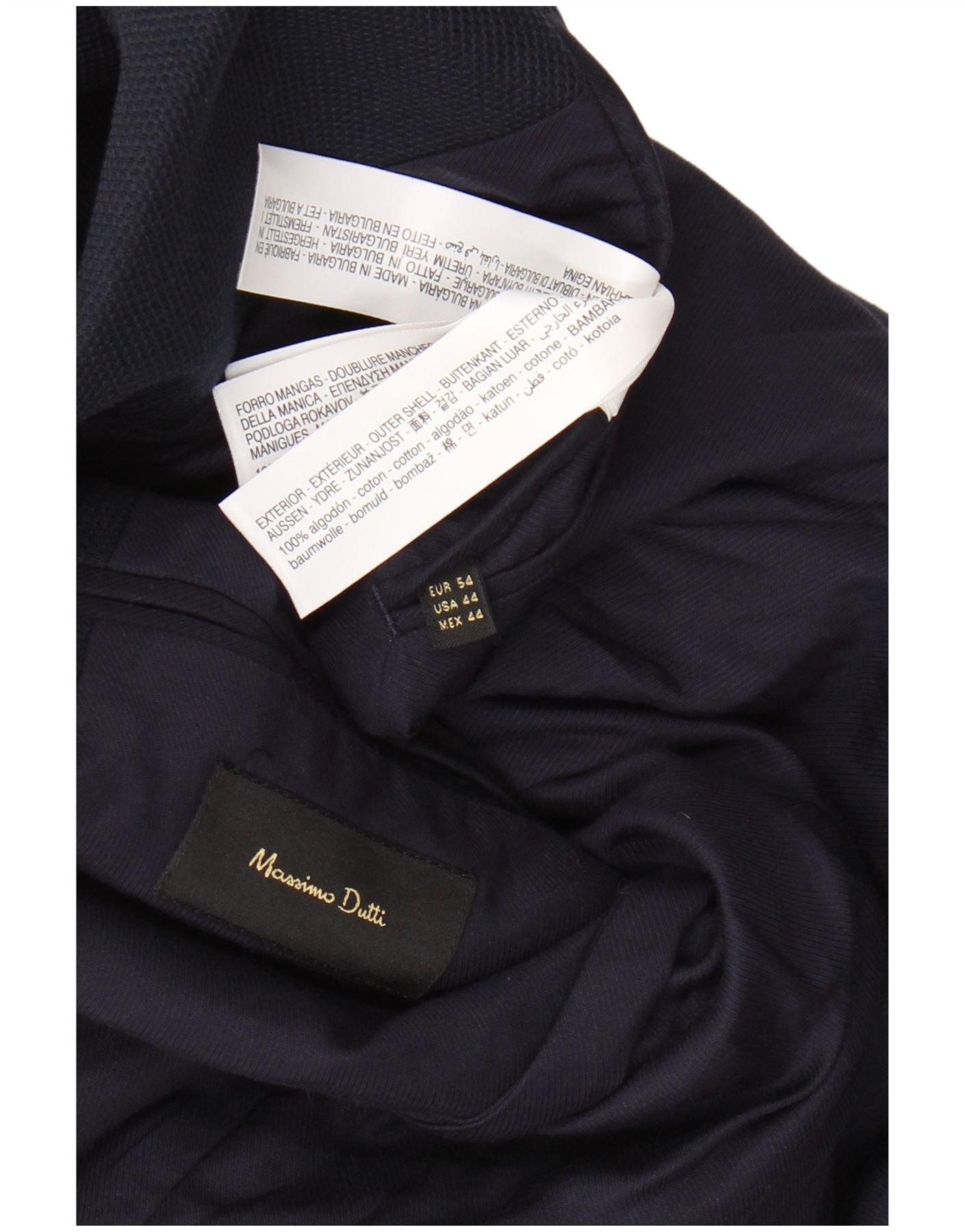 MASSIMO DUTTI Mens Skinny 2 Button Blazer Jacket EU 54 XL Navy Blue Cotton