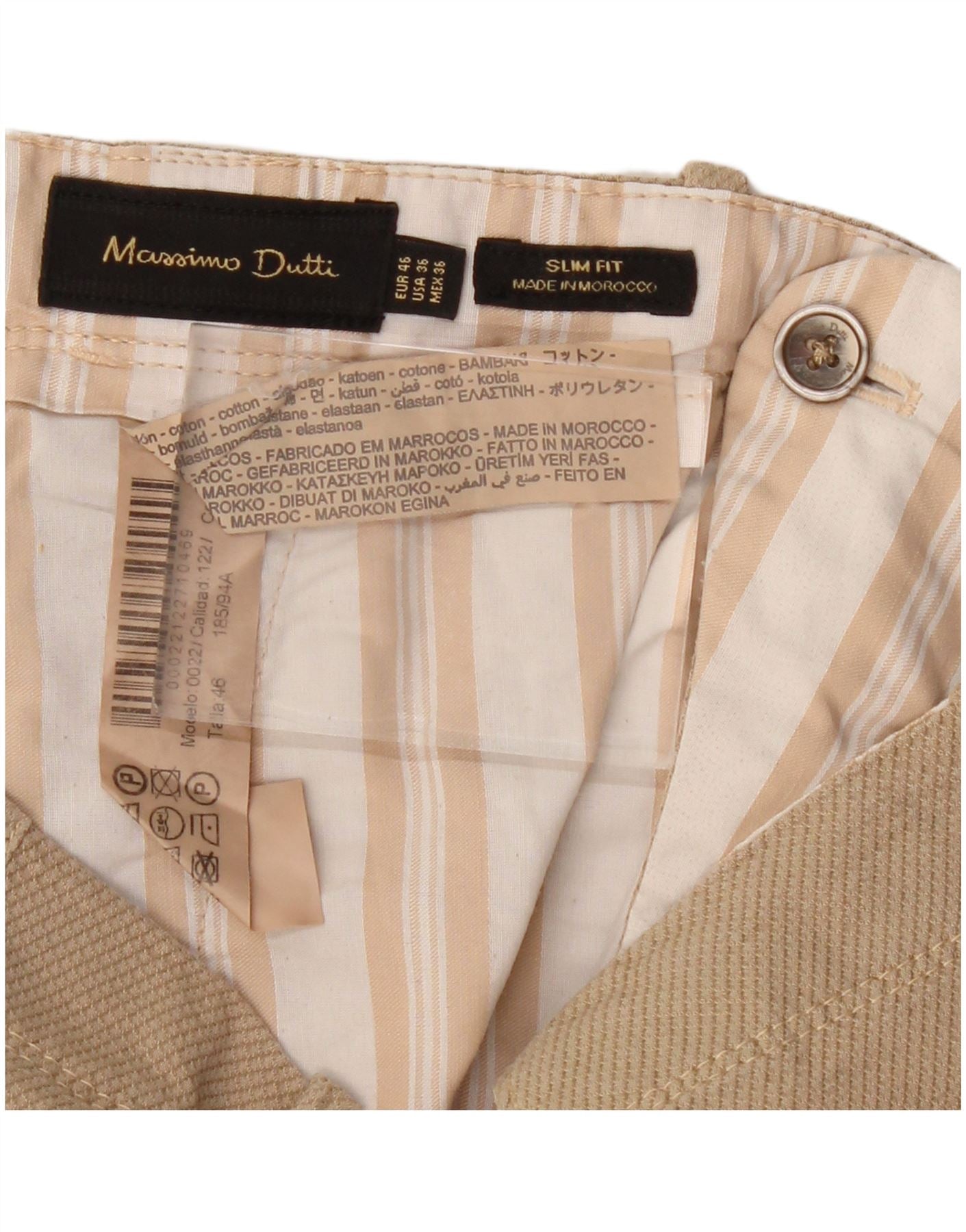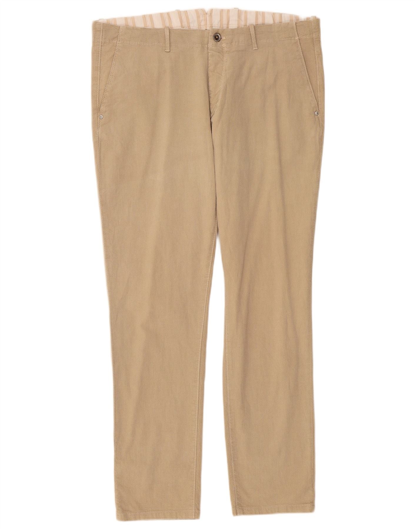 MASSIMO DUTTI Mens Slim Fit Chino Trousers EU 46 XL W36 L30 Beige Cotton