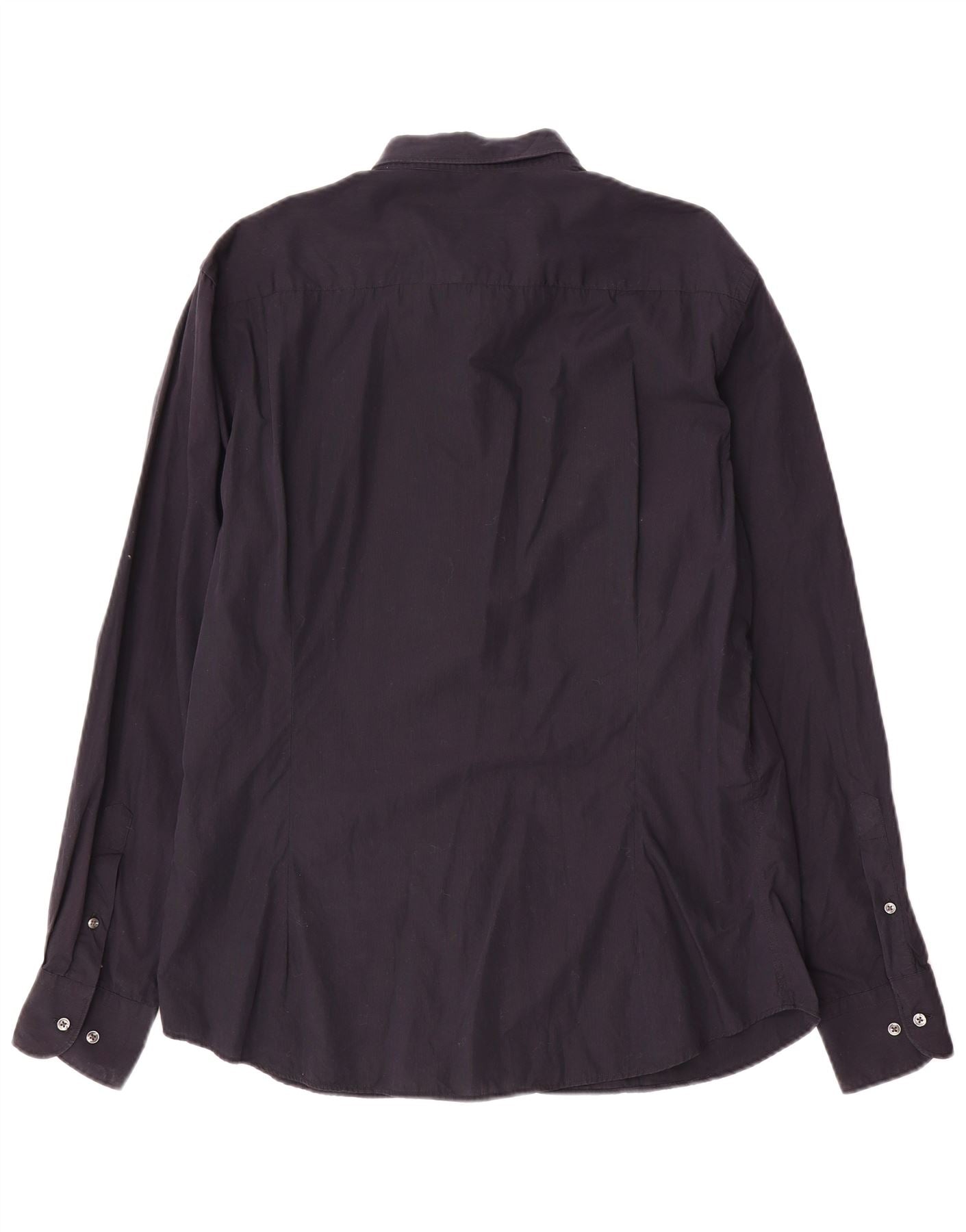 MASSIMO DUTTI Mens Slim Fit Shirt XL Navy Blue Cotton