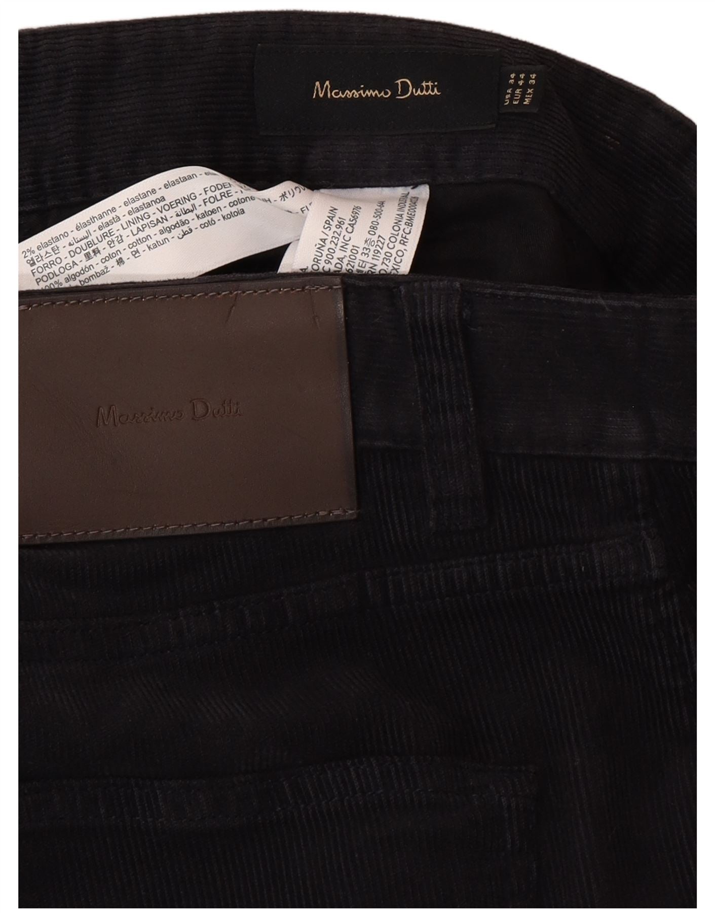 MASSIMO DUTTI Mens Straight Corduroy Trousers EU 44 Large W36 L30 Black