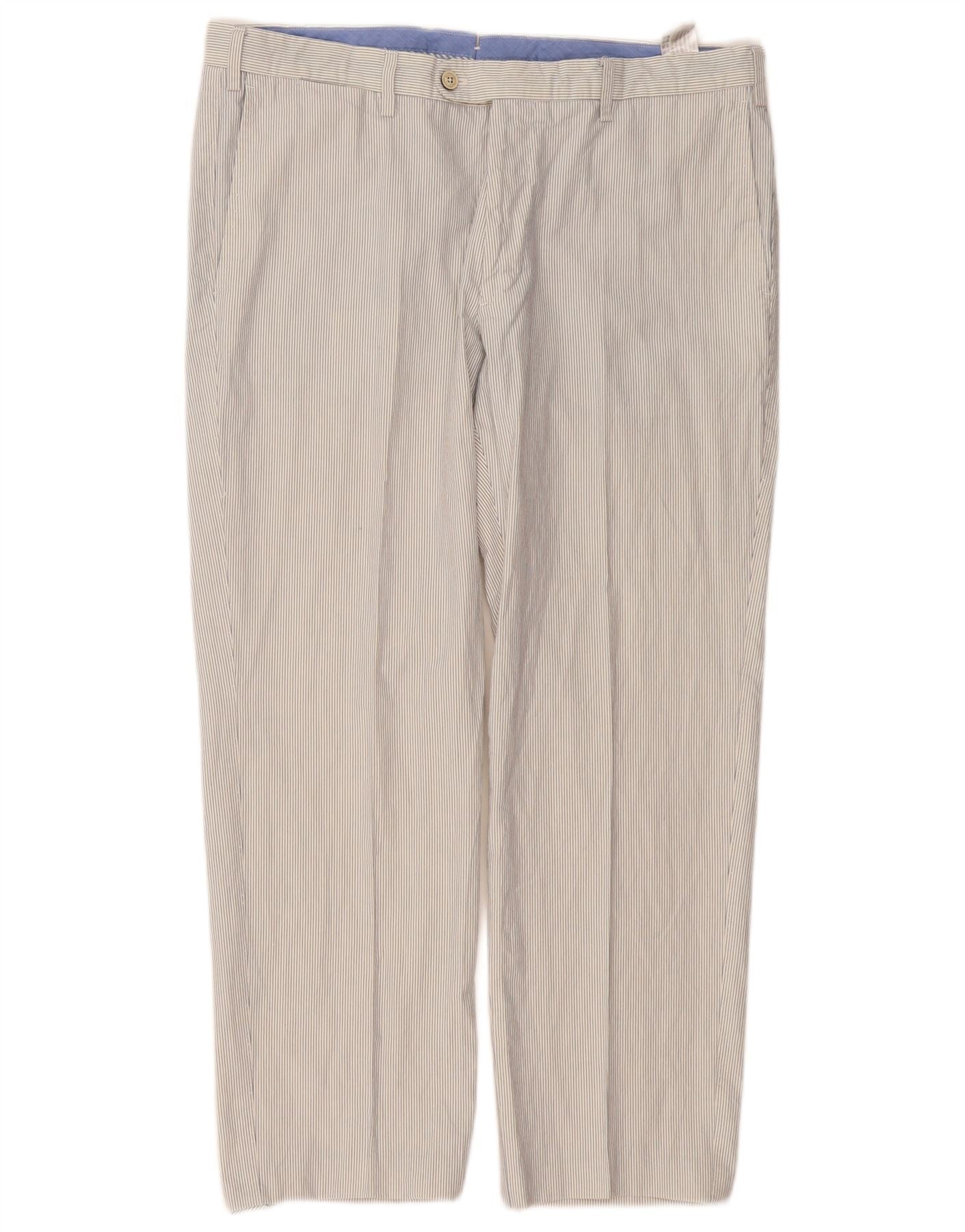 MASSIMO DUTTI Mens Straight Suit Trousers EU 46 XL W36 L27 White Striped