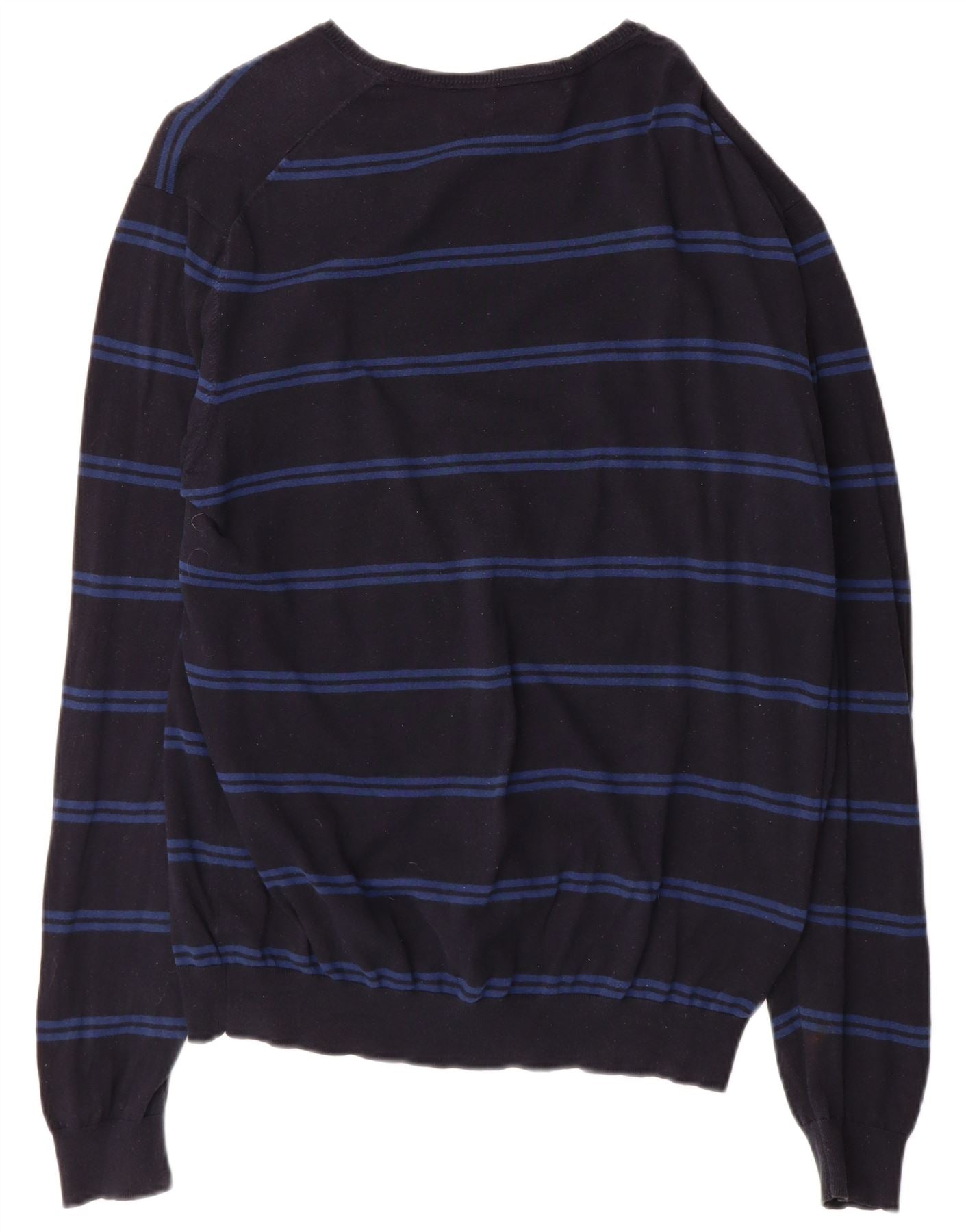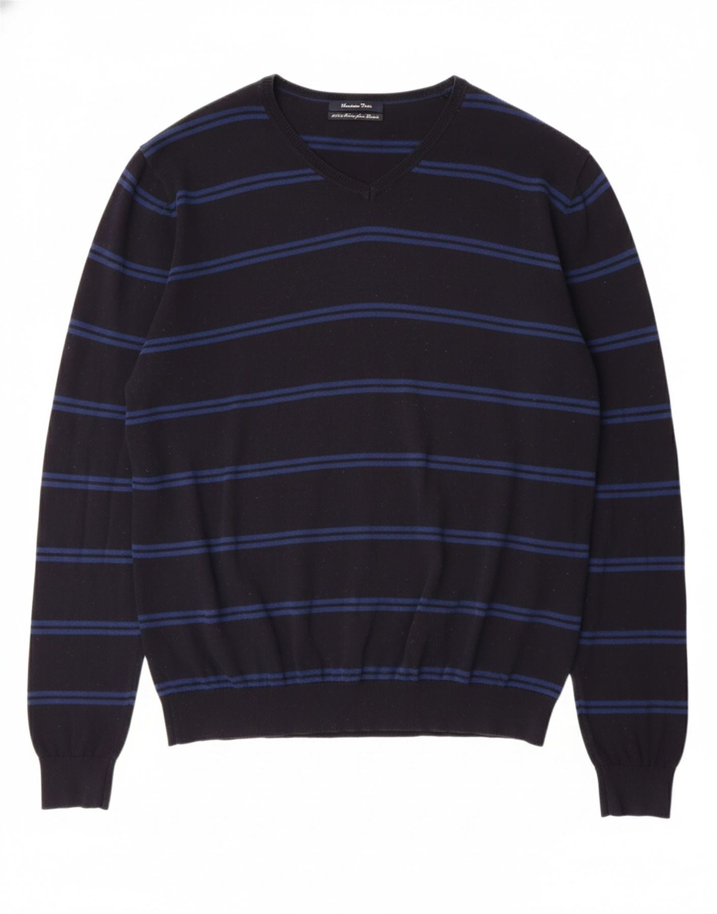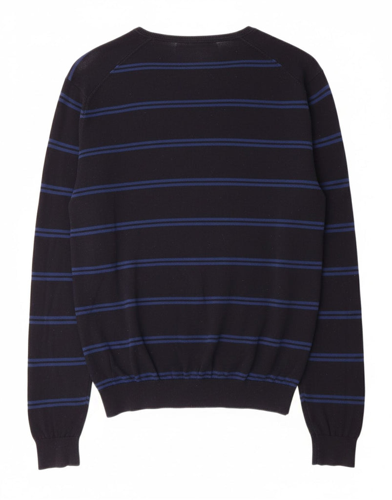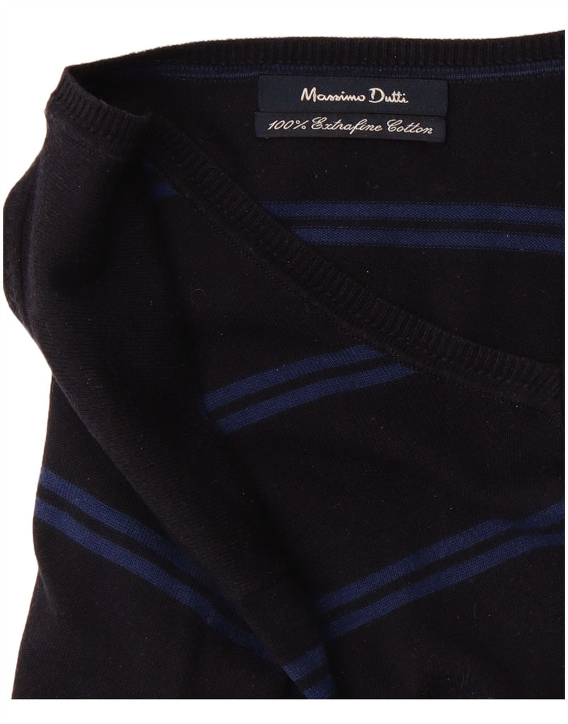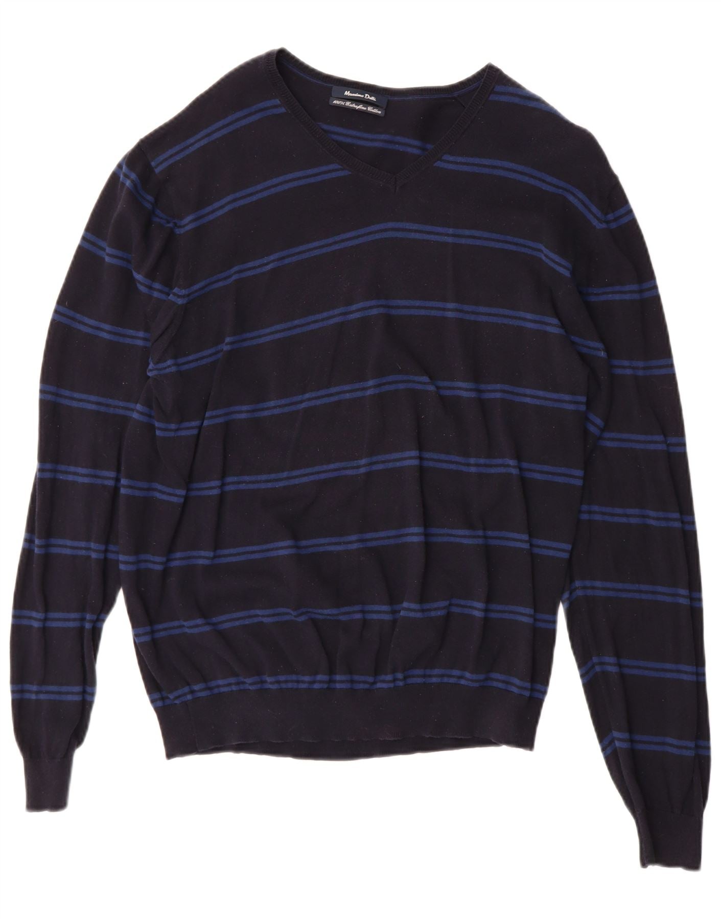 MASSIMO DUTTI Mens V-Neck Jumper Sweater Small Navy Blue Striped Cotton