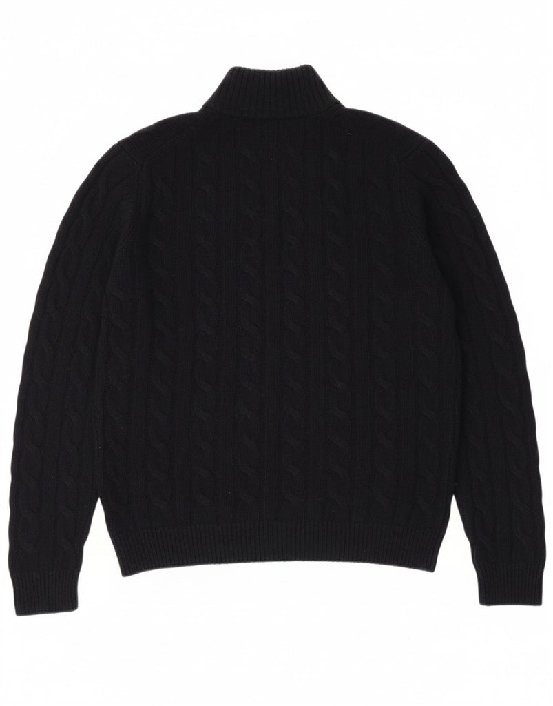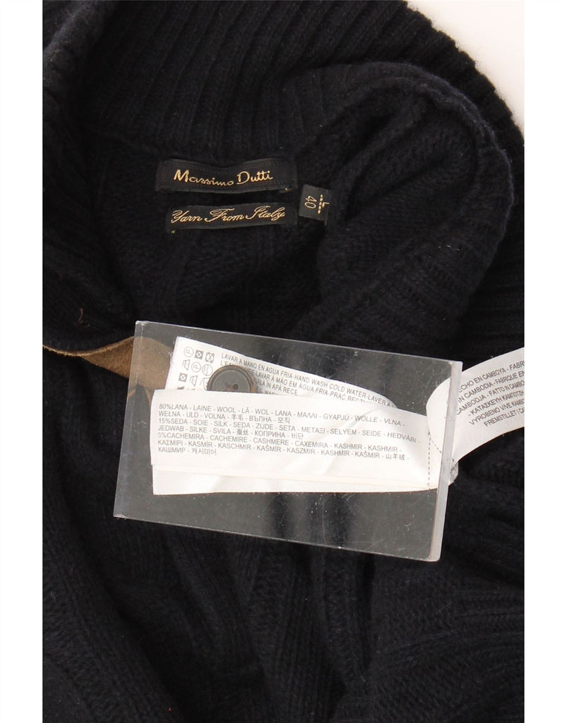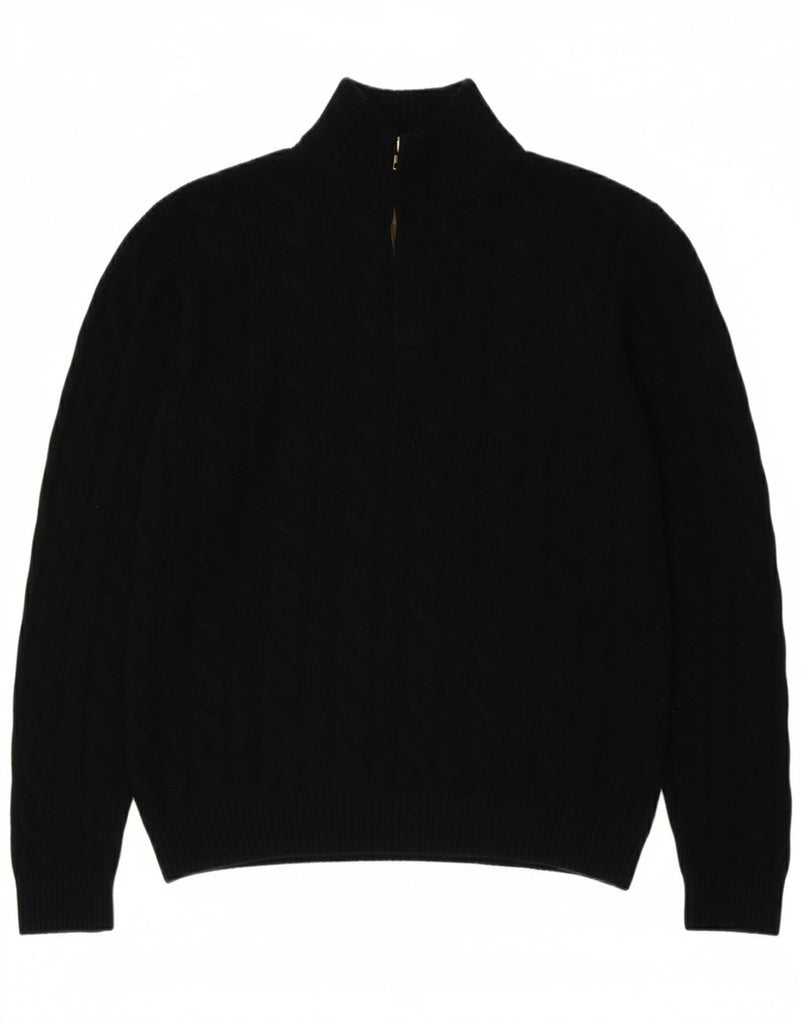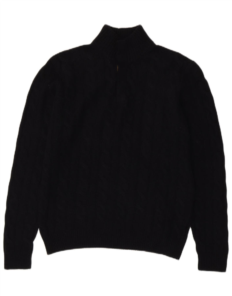 MASSIMO DUTTI Mens Zip Neck Jumper Sweater EU 40 Medium Navy Blue Wool