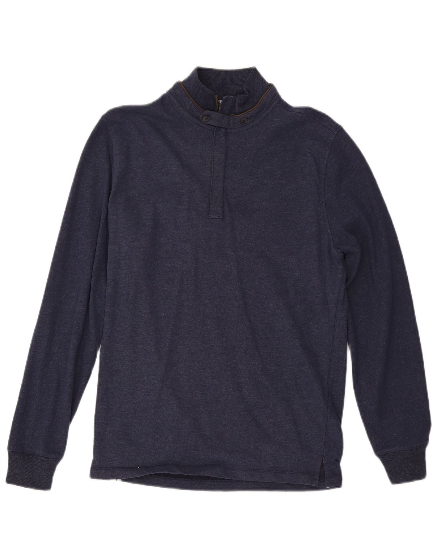 MASSIMO DUTTI Mens Zip Neck Top Long Sleeve Medium Navy Blue Cotton