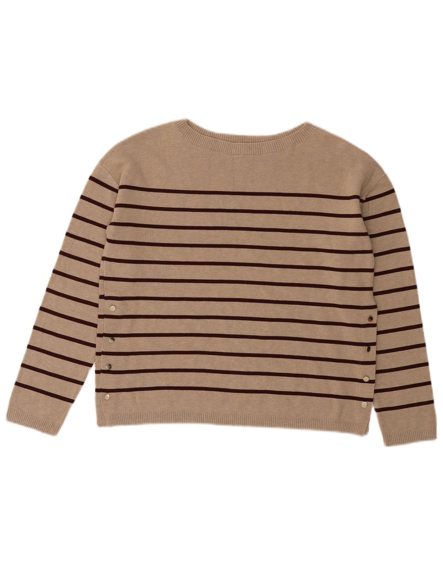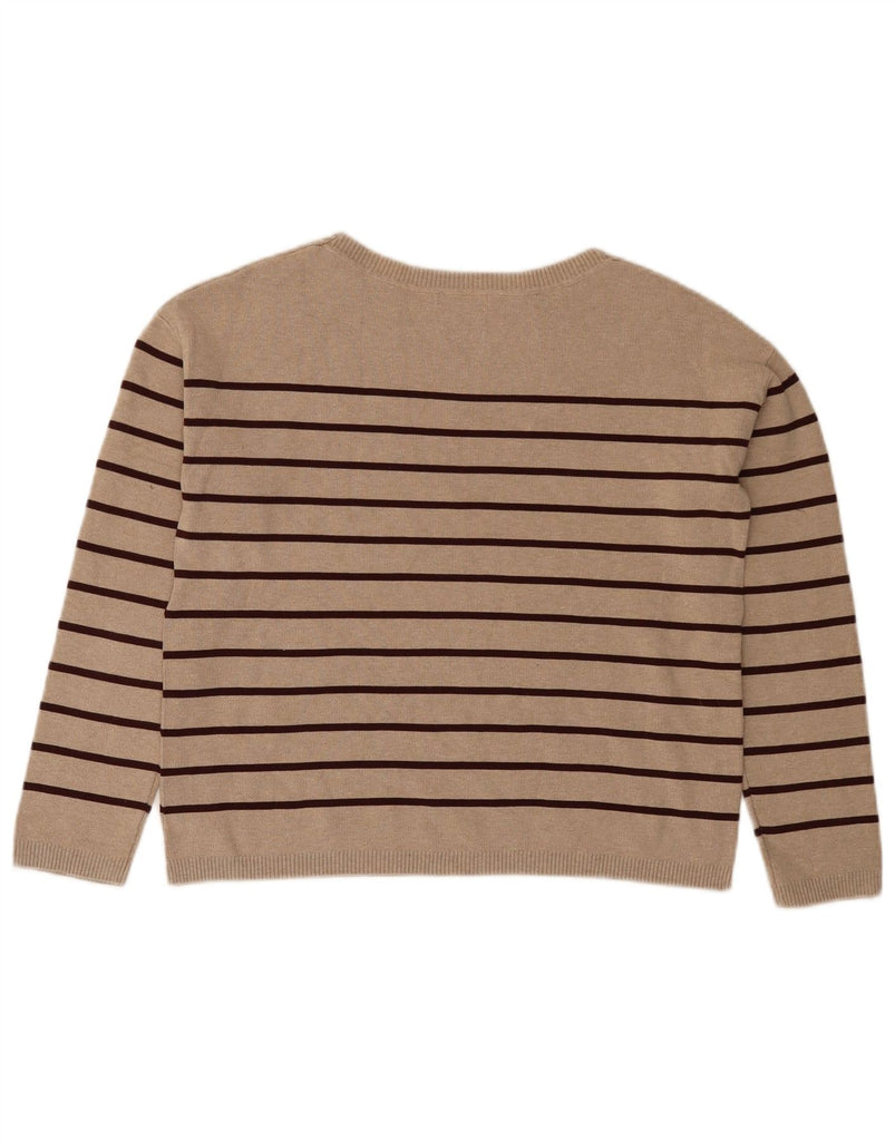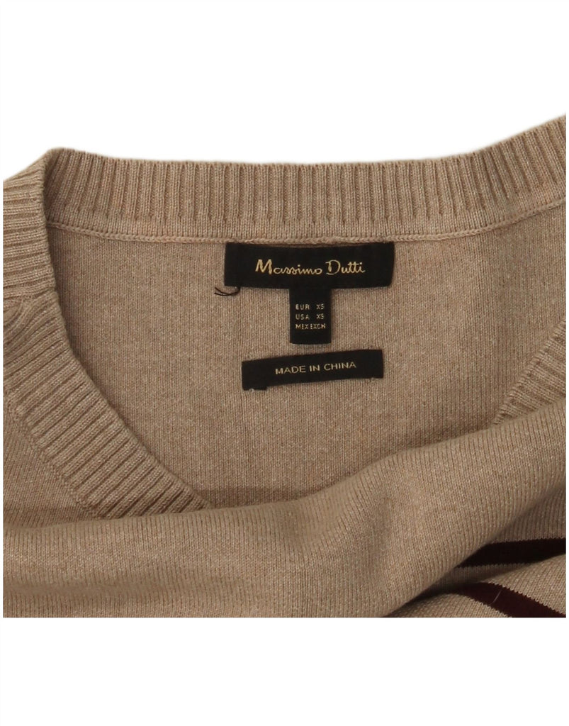 MASSIMO DUTTI Womens Crop Crew Neck Jumper Sweater UK 6 XS Beige Striped