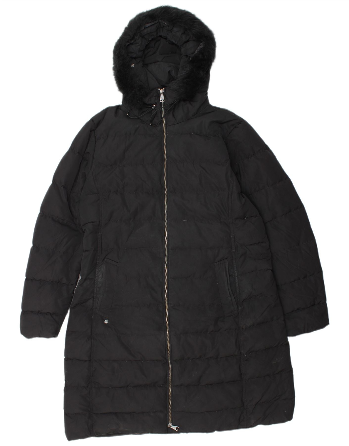 MASSIMO DUTTI Womens Hooded Padded Coat UK 18 XL Black Polyester