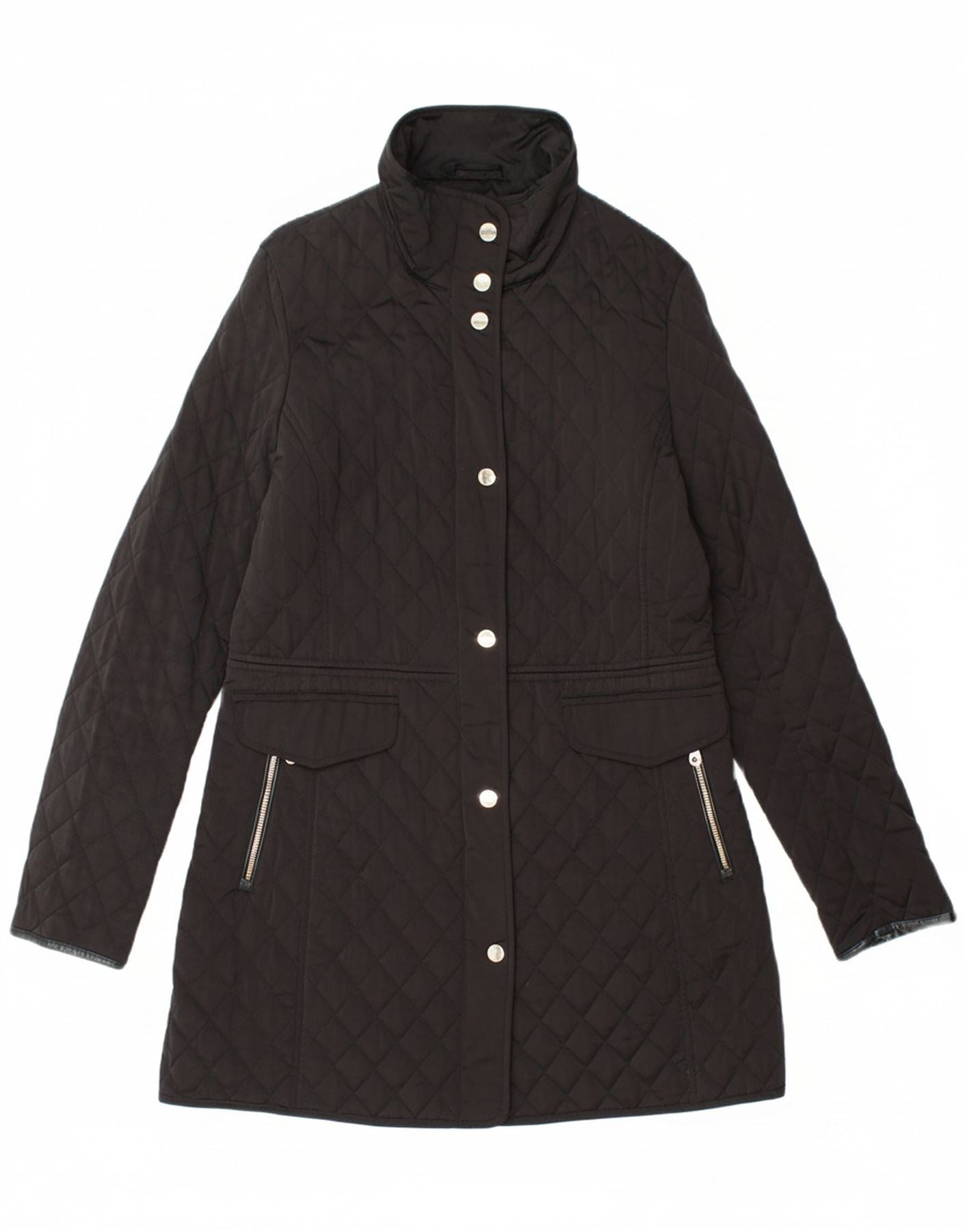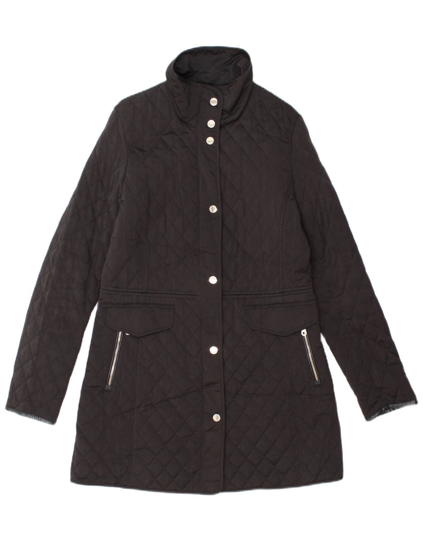 MASSIMO DUTTI Womens Quilted Overcoat UK 10 Small Black Polyester