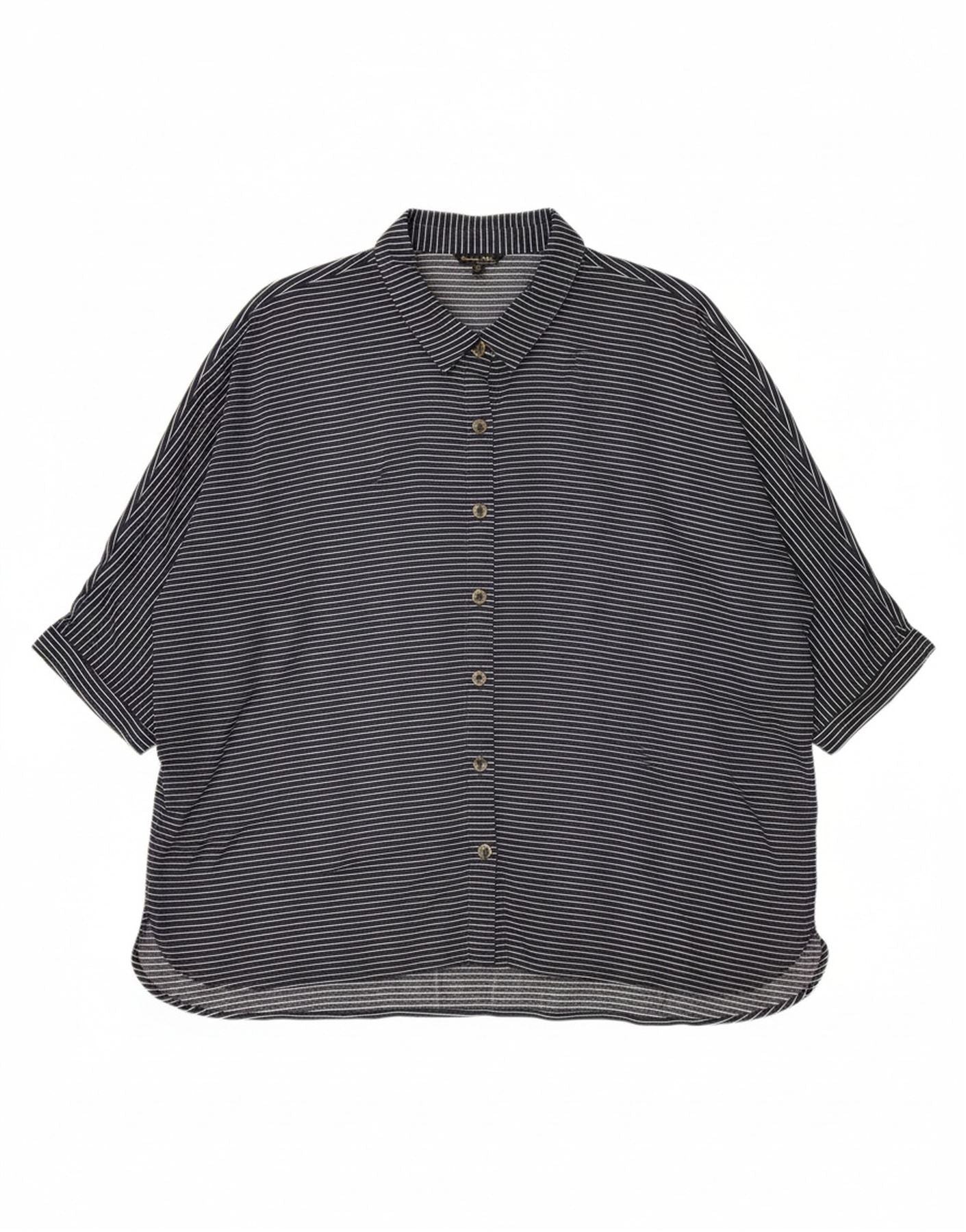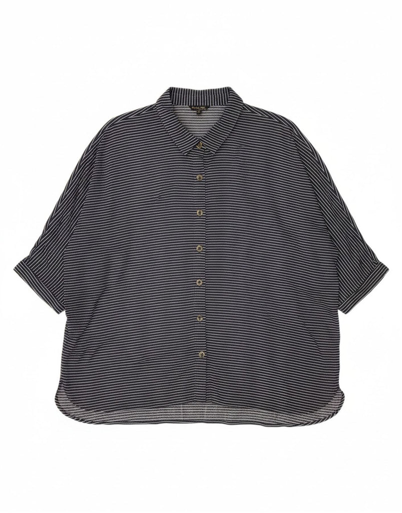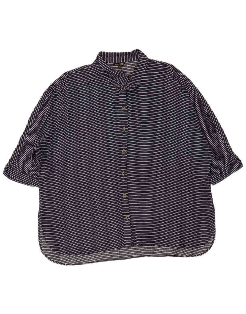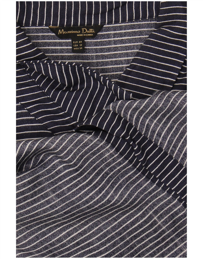 MASSIMO DUTTI Womens Short Sleeve Shirt Blouse EU 44 XL Navy Blue Striped