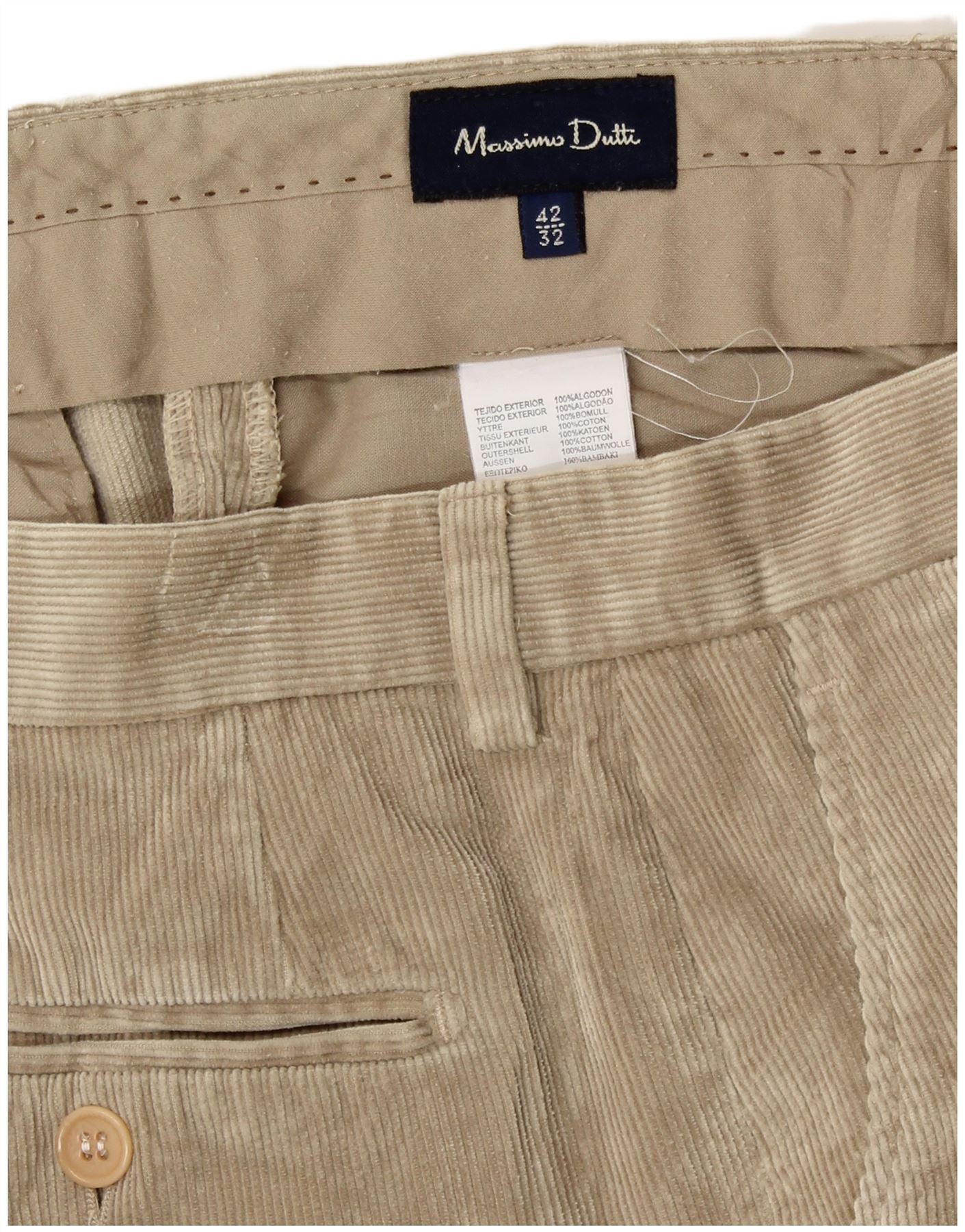 MASSIMO DUTTI Womens Straight Corduroy Trousers EU 42 Large W32 L28 Beige