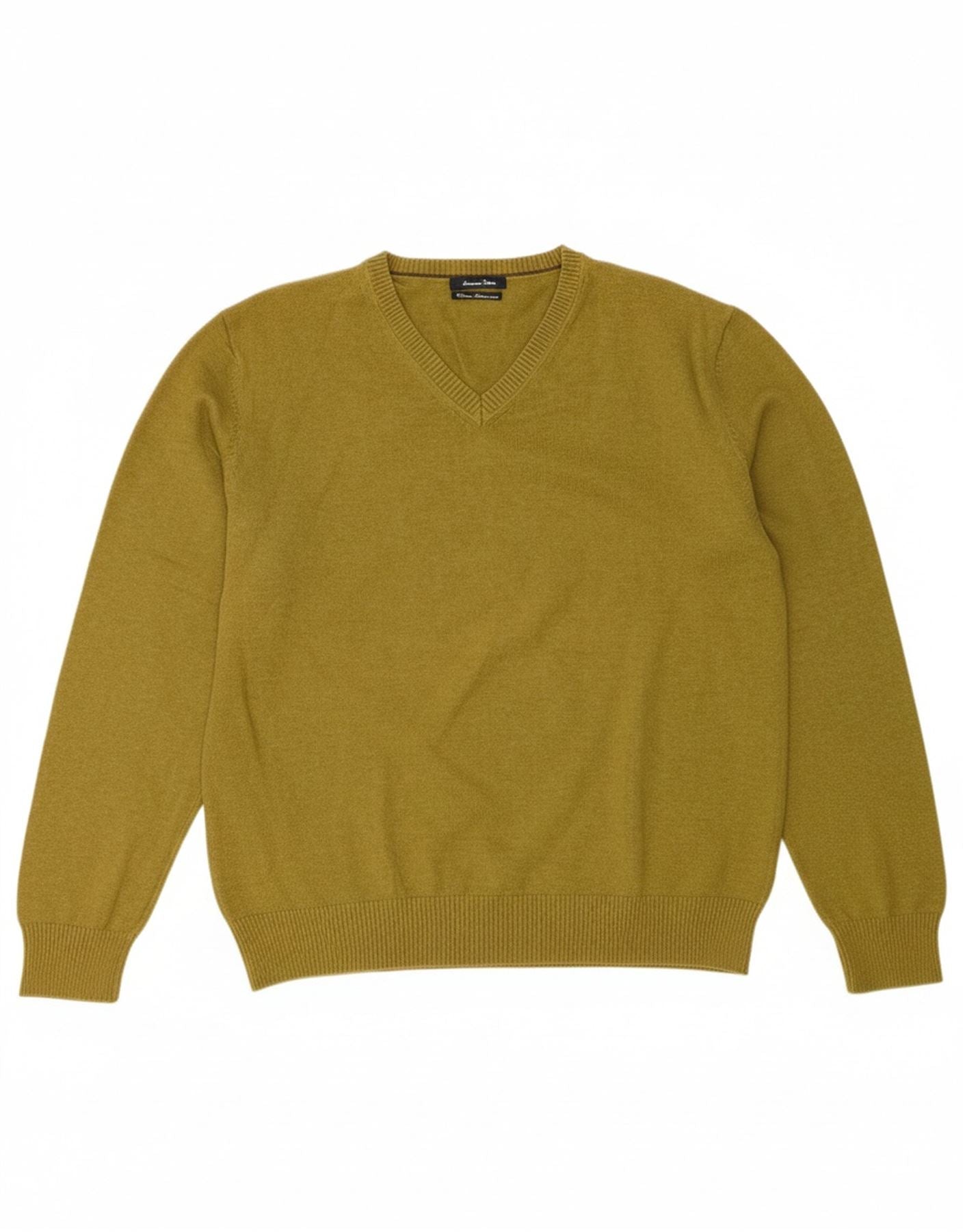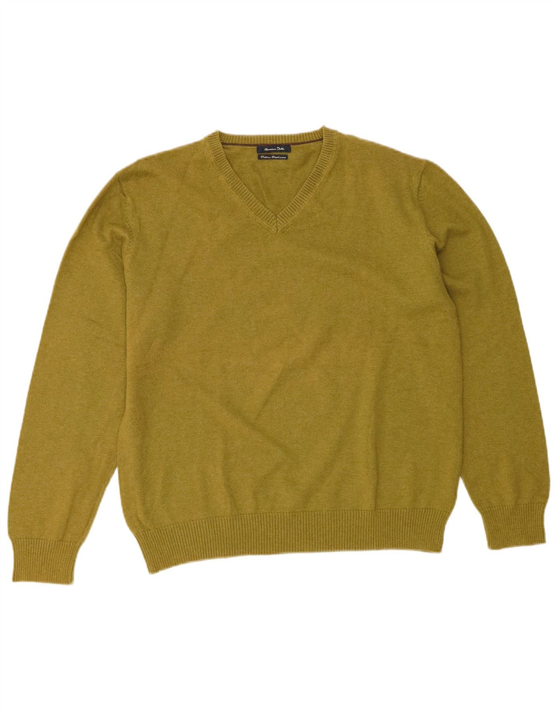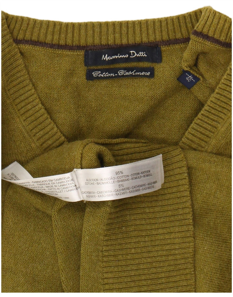 MASSIMO DUTTI Womens V-Neck Jumper Sweater EU 40 Medium Khaki Cotton