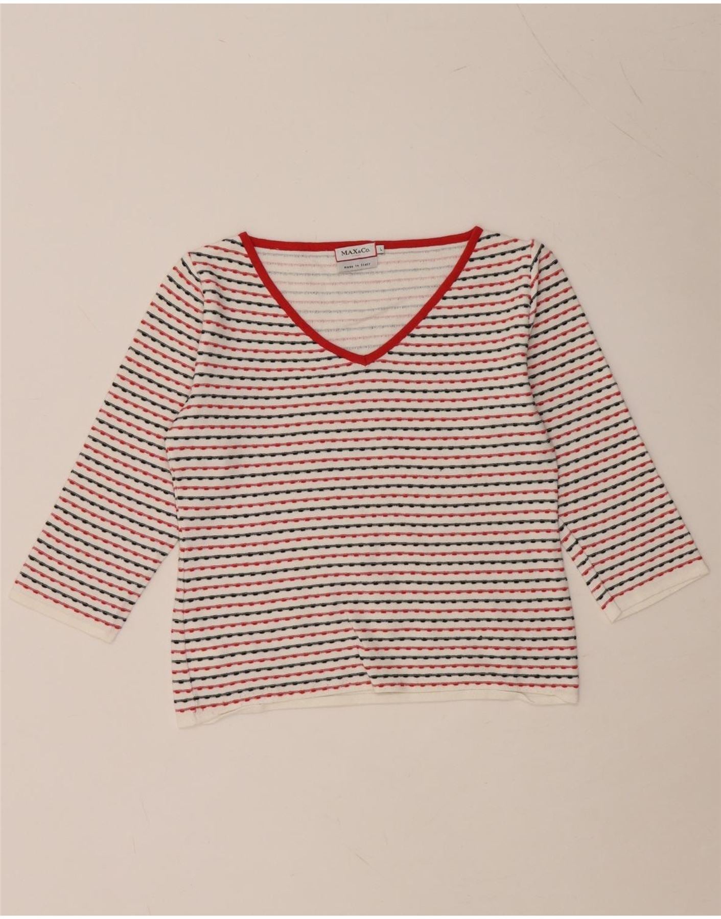 MAX & CO. Womens Crop Top 3/4 Sleeve UK 14 Large White Striped Viscose