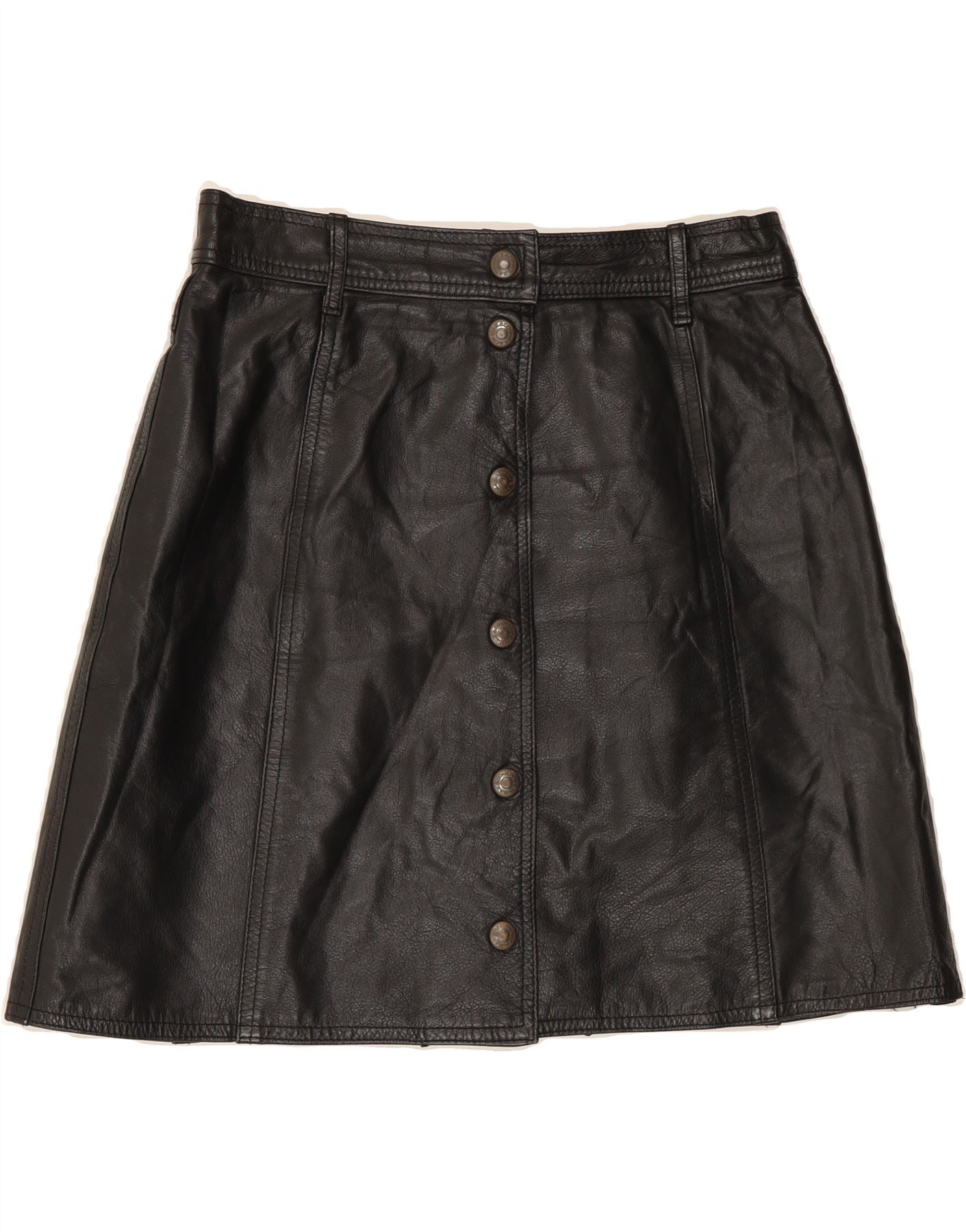 MAX&CO. Womens Leather A-Line Skirt UK 14 Medium W28 Black Leather