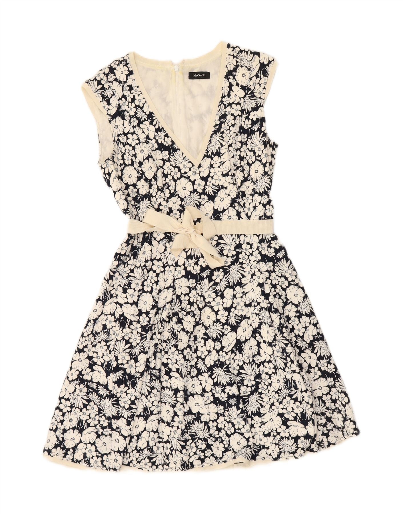 MAX & CO. Womens Sleeveless A-Line Dress UK 12 Medium Black Floral Cotton