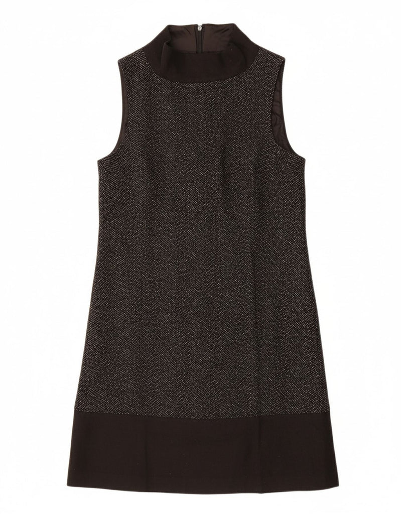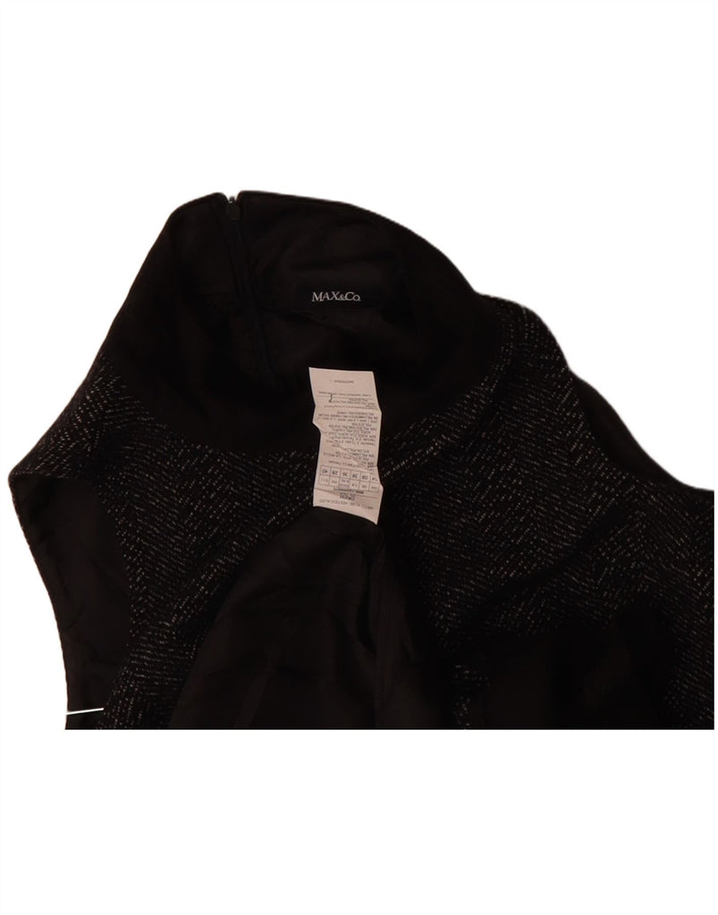 MAX & CO. Womens Sleeveless A-Line Dress UK 8 Small Black Herringbone Wool
