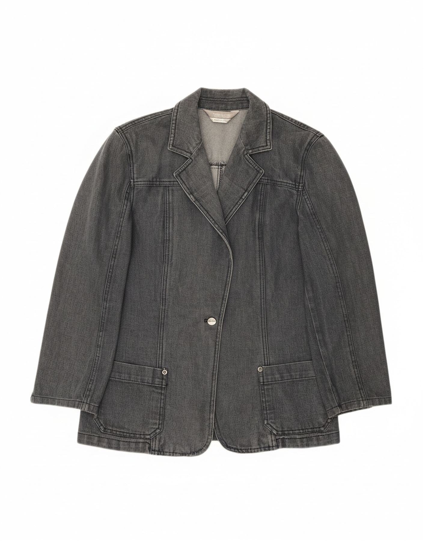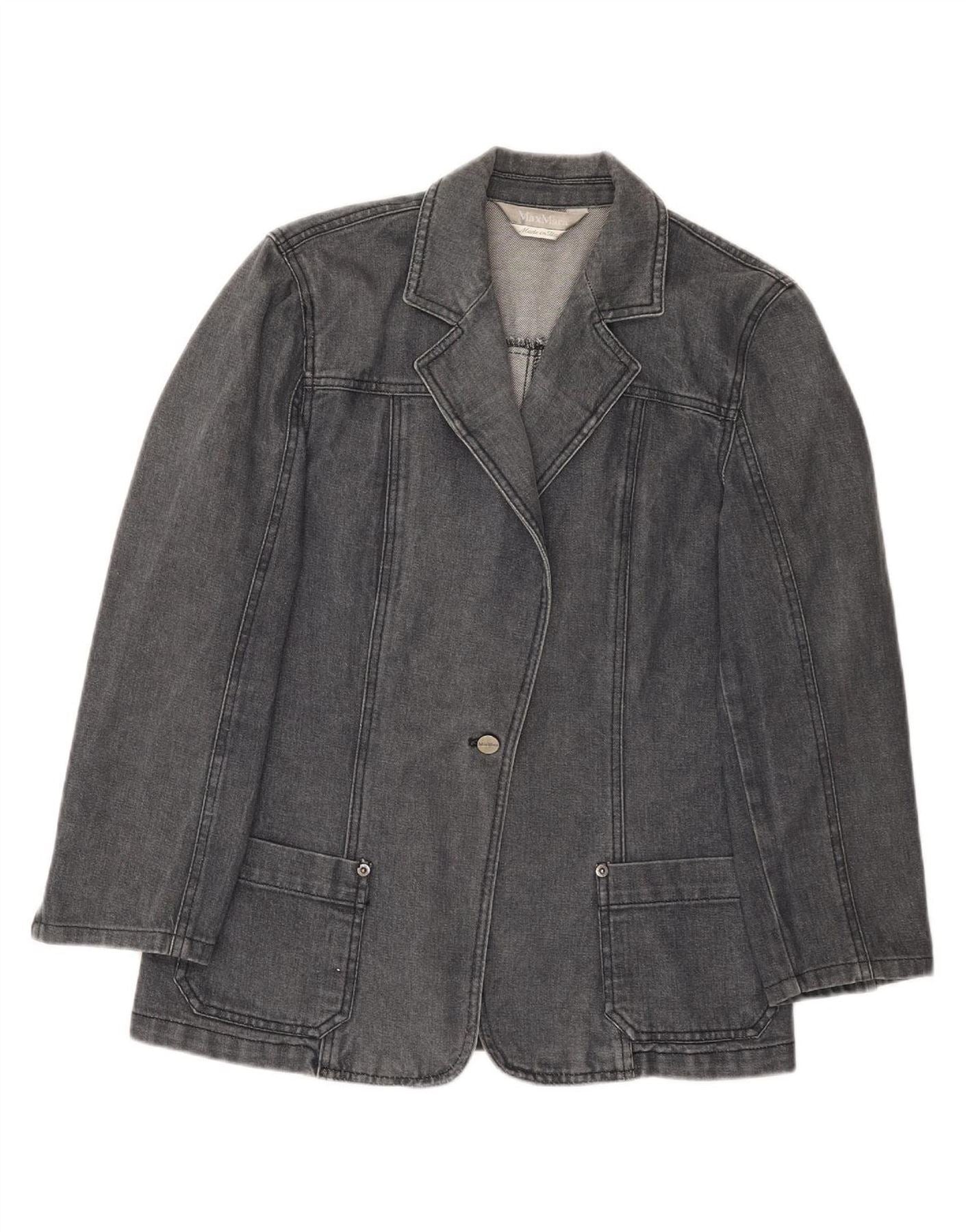MAX MARA Womens 1 Button Denim Blazer Jacket UK 12 Medium Grey Cotton