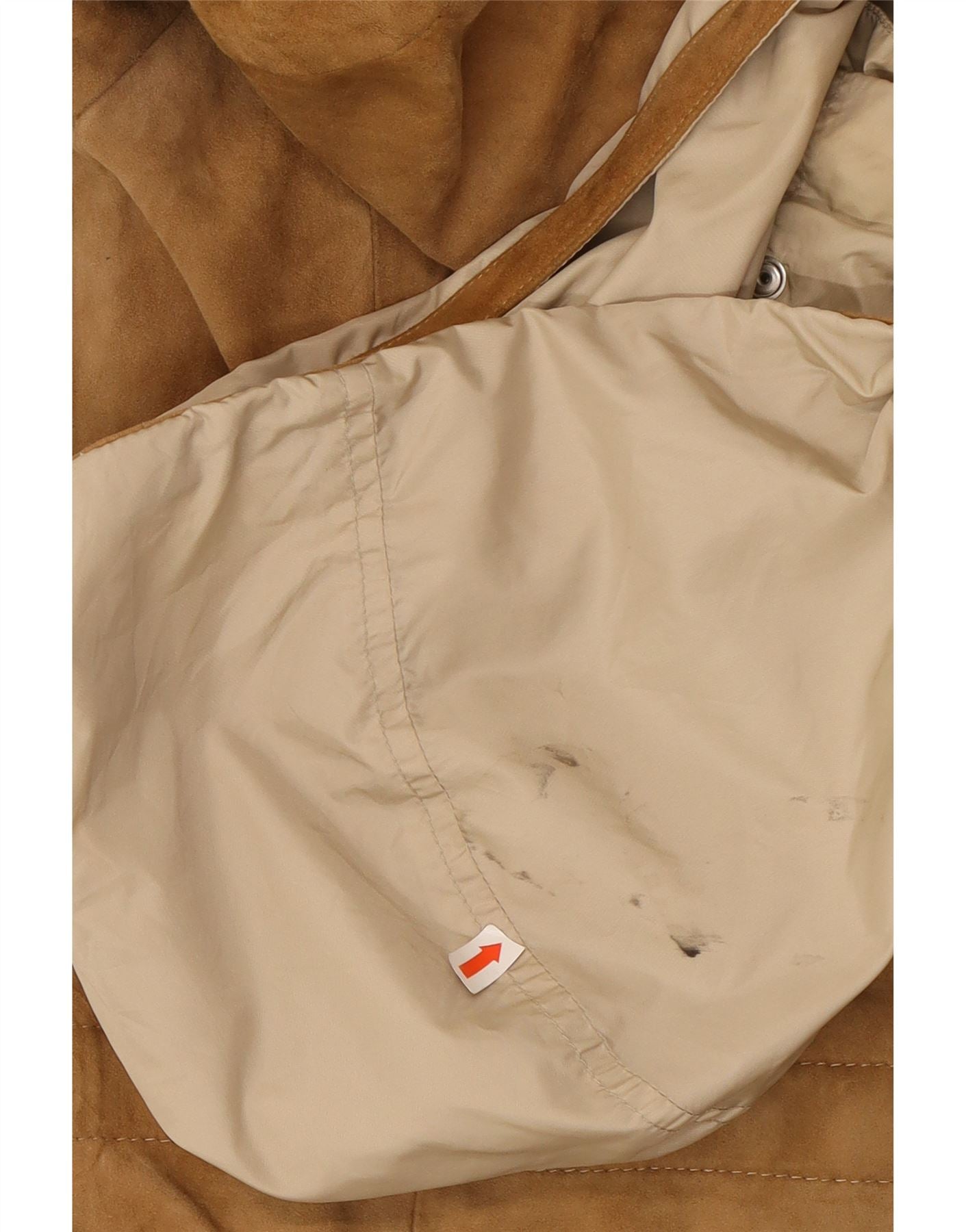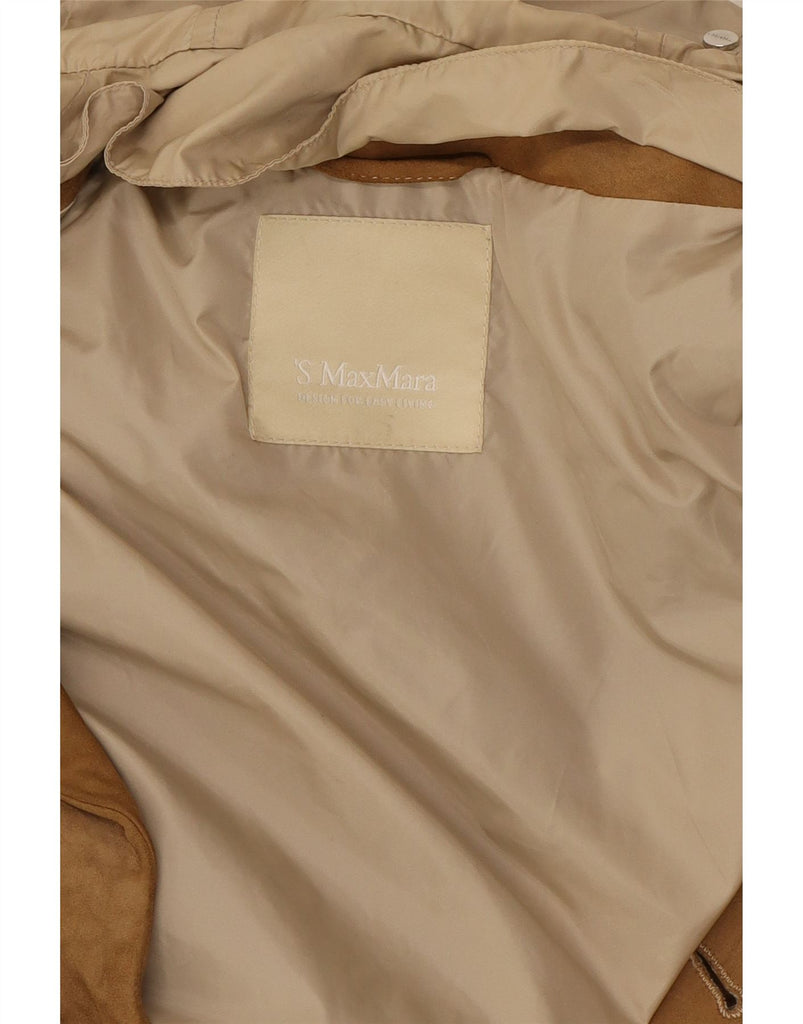 MAX MARA Womens Hooded Parka Jacket UK 12 Medium Brown Colourblock Leather