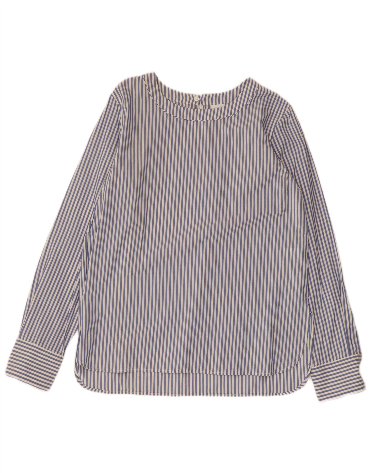 MAX MARA Womens Oversized Blouse Top UK 10 Small Blue Striped Cotton