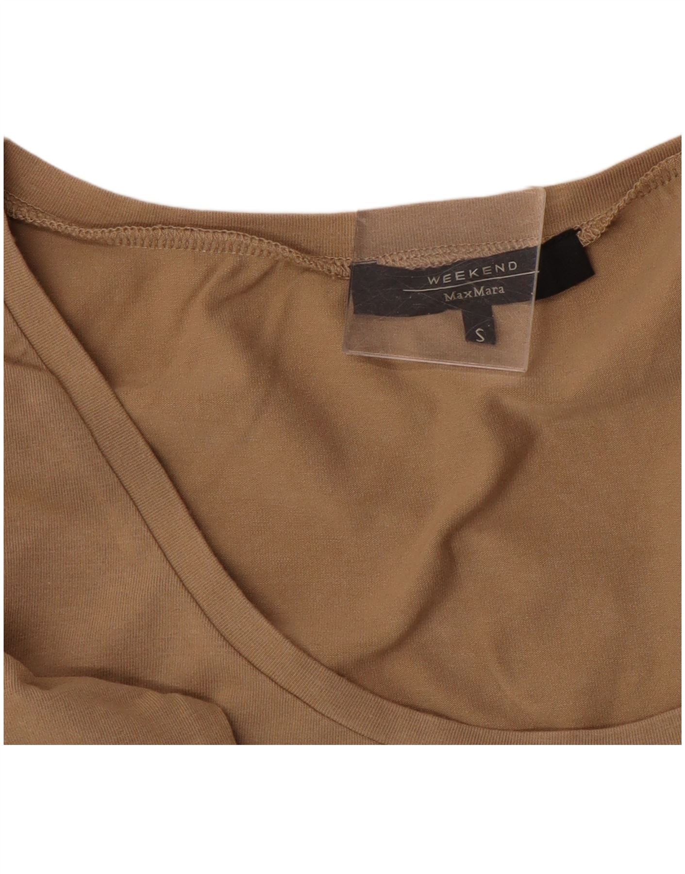 - AI Description: This Max Mara women's T-Shirt Top is crafted from soft jersey fabric in a versatile beige hue. It features a classic round neck and comfortable 3/4 length sleeves. The pullover design ensures ease of wear. With a regular fit, this WEEKEND model offers a relaxed yet refined silhouette. Its classic style makes it a wardrobe essential for effortless elegance.