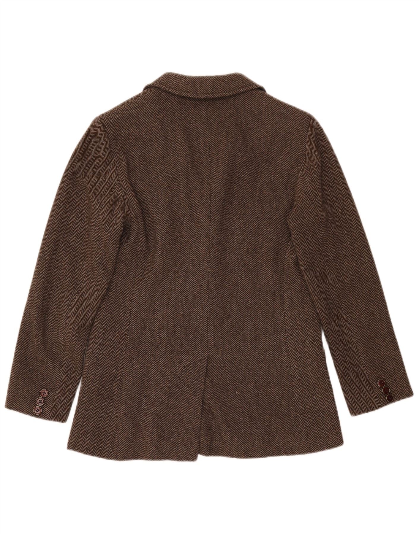 - AI Description: This Weekend Max Mara womens 2 Piece Suit is crafted from luxurious 100 percent wool tweed. The brown herringbone weave offers a rich, textured finish. The jacket features a collared neckline and a classic three-button front. Long sleeves and a regular fit ensure a comfortable silhouette. It is fully lined and includes practical pockets. The matching trousers have a regular fit, completing the sophisticated ensemble. The herringbone pattern adds timeless visual interest.