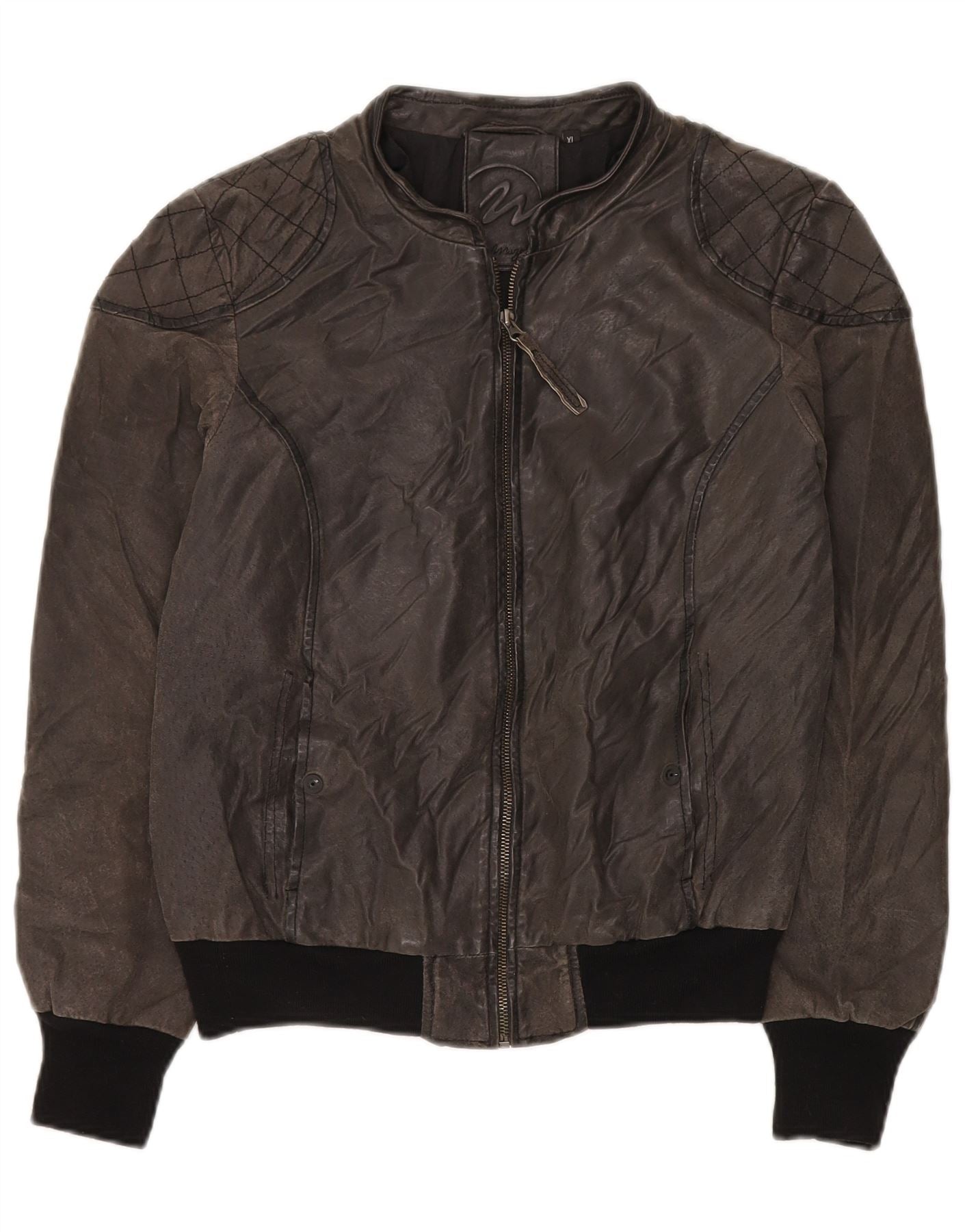 MAZE Mens Suede Bomber Jacket UK 38 Medium Grey Leather