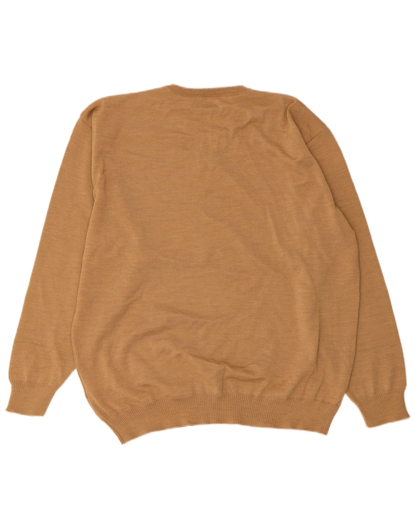 MERCEDES-BENZ Mens V-Neck Jumper Sweater XL Beige New Wool