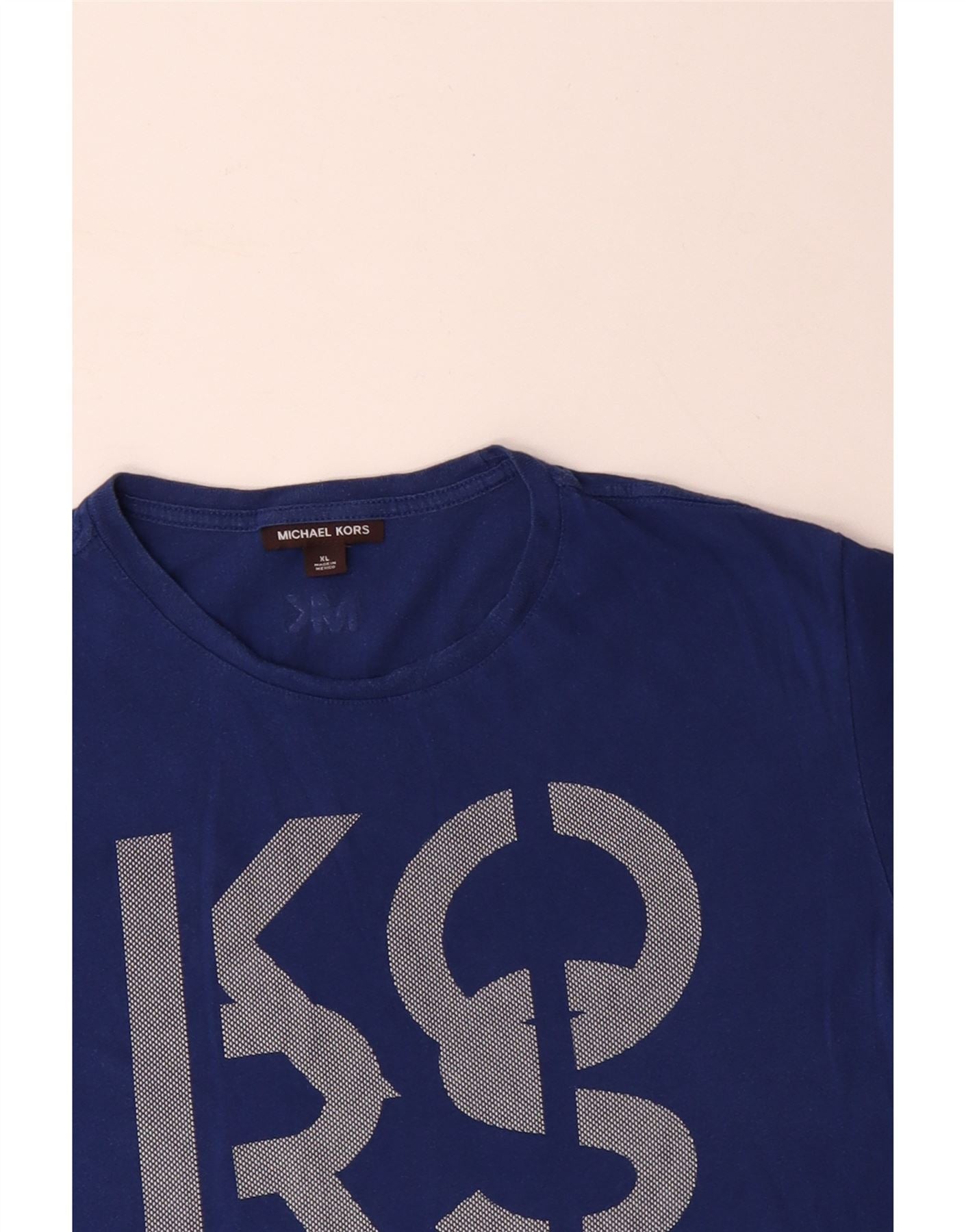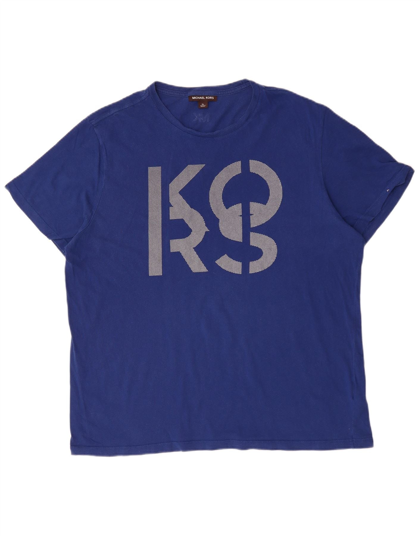 MICHAEL KORS Mens Graphic T-Shirt Top XL Blue Cotton