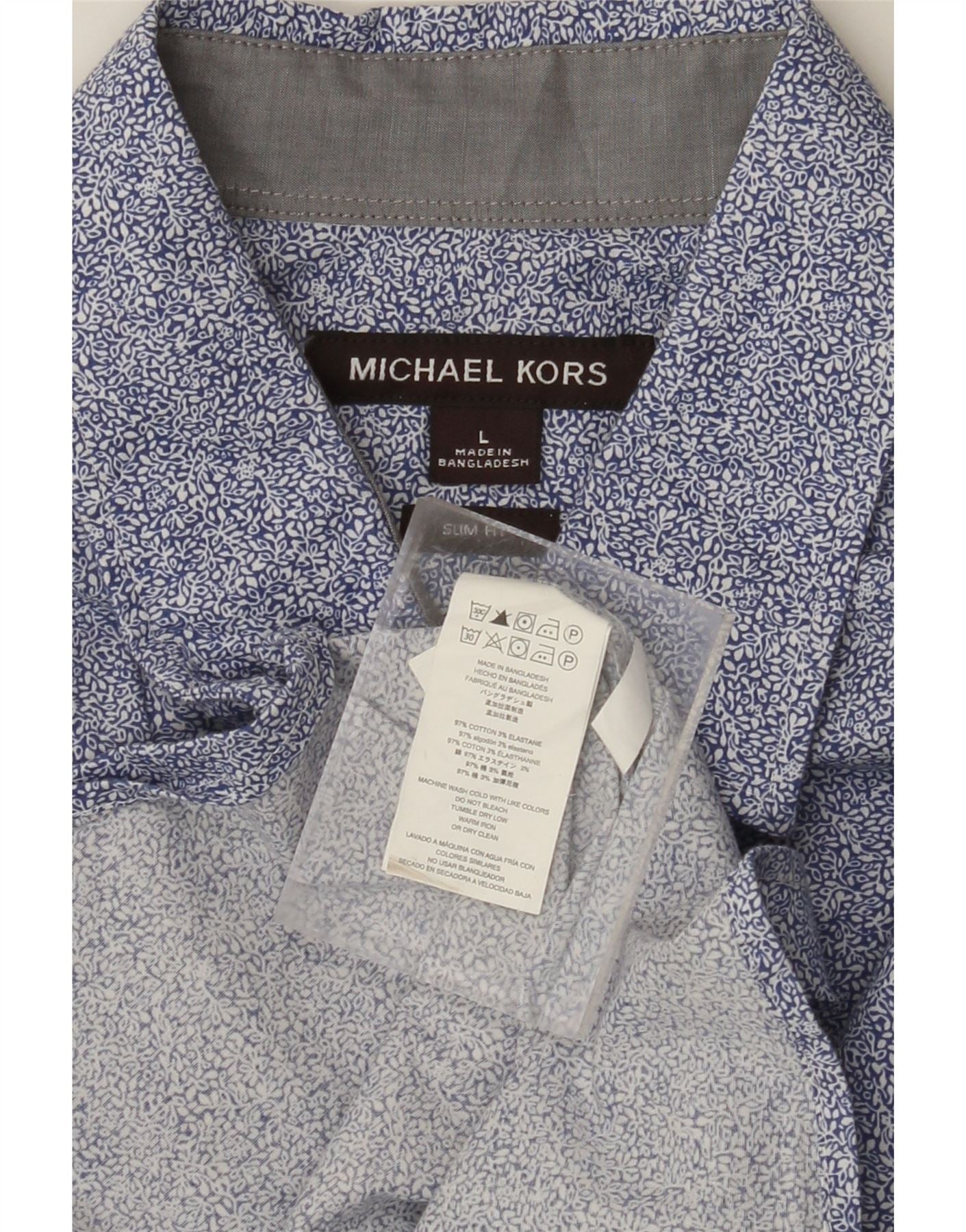 MICHAEL KORS Mens Slim Fit Shirt Large Blue Floral Cotton