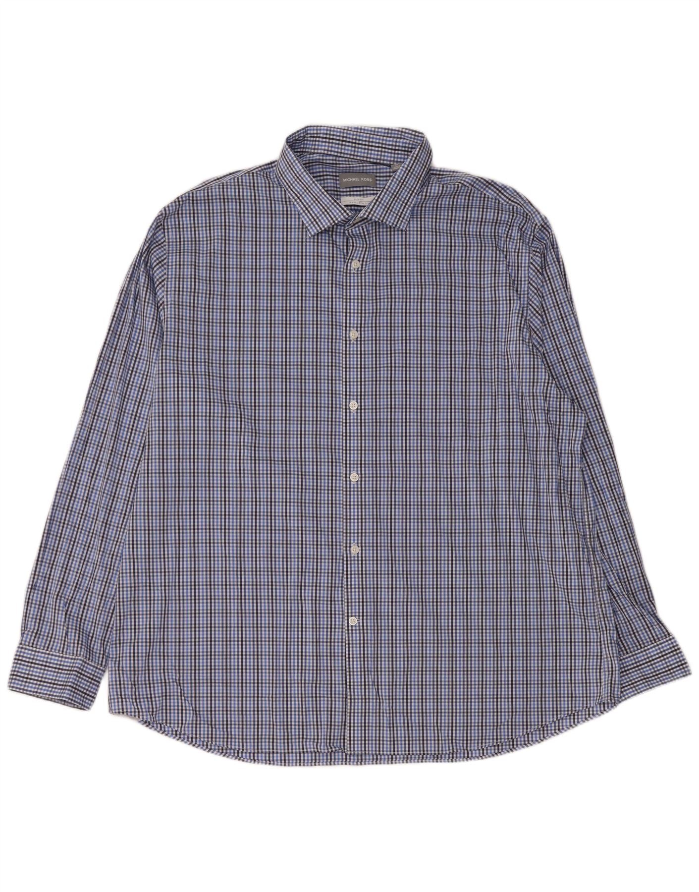 MICHAEL KORS Mens Slim Fit Shirt Size 18 1/2 2XL Blue Check Cotton