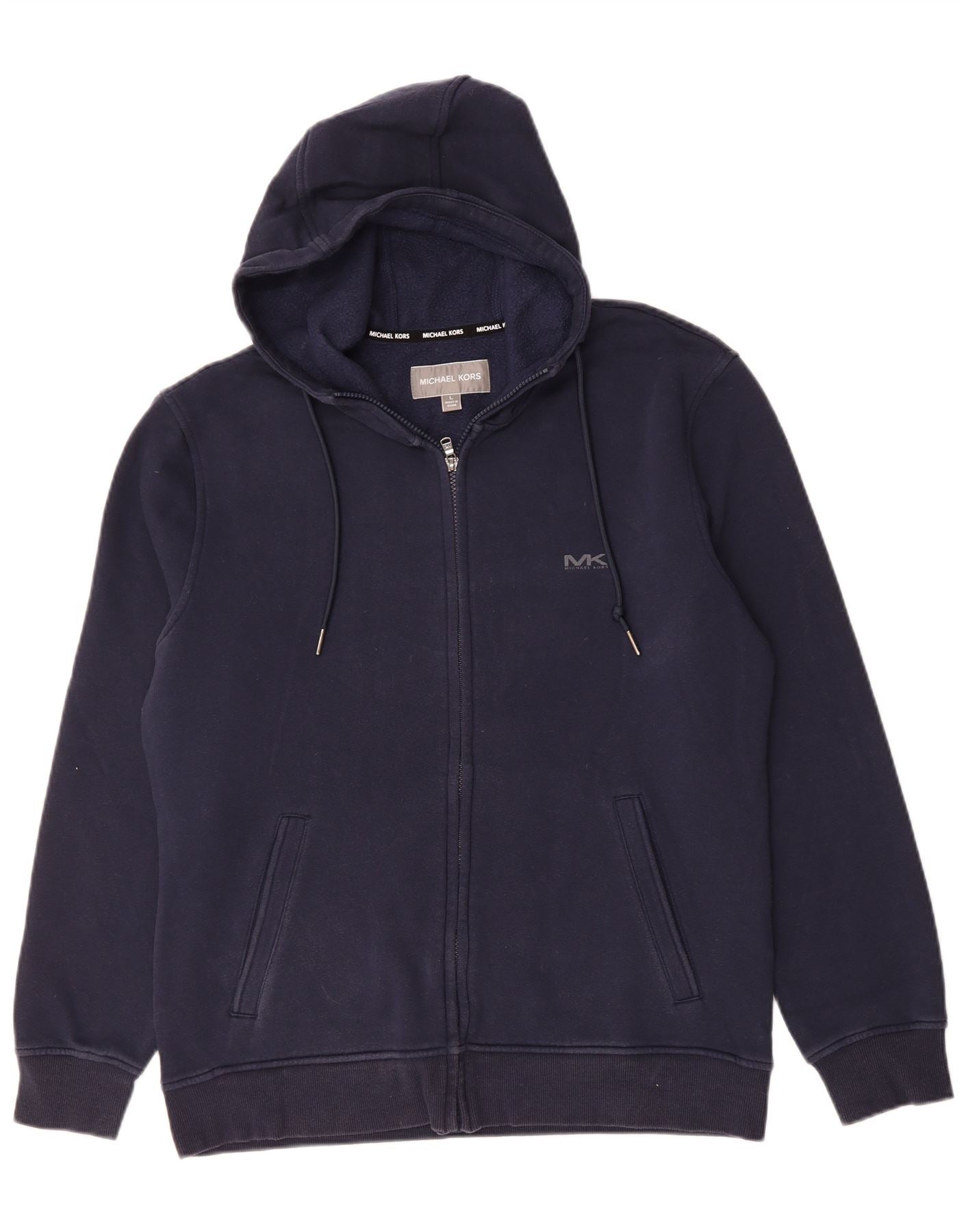 MICHAEL KORS Mens Zip Hoodie Sweater Large Navy Blue Cotton