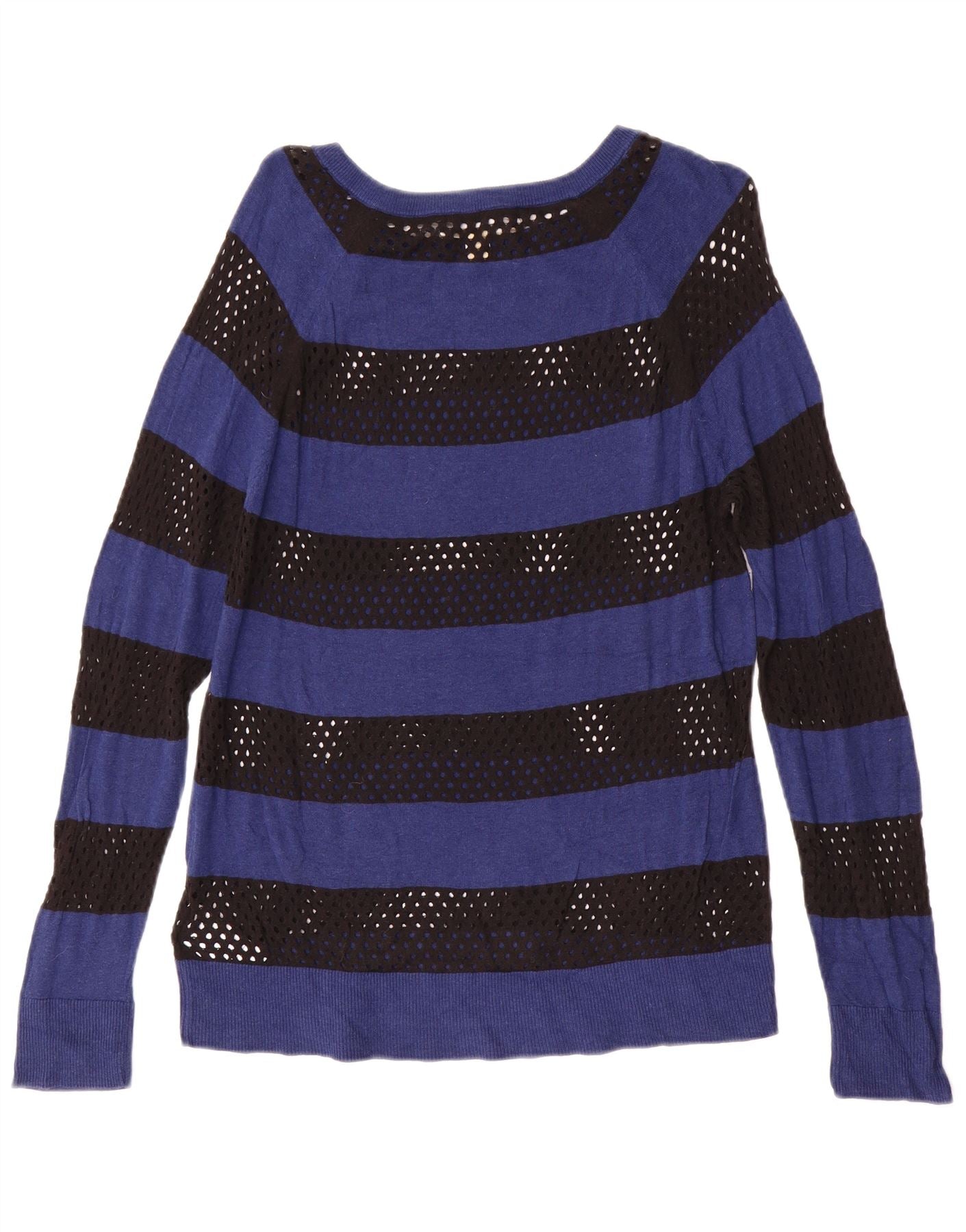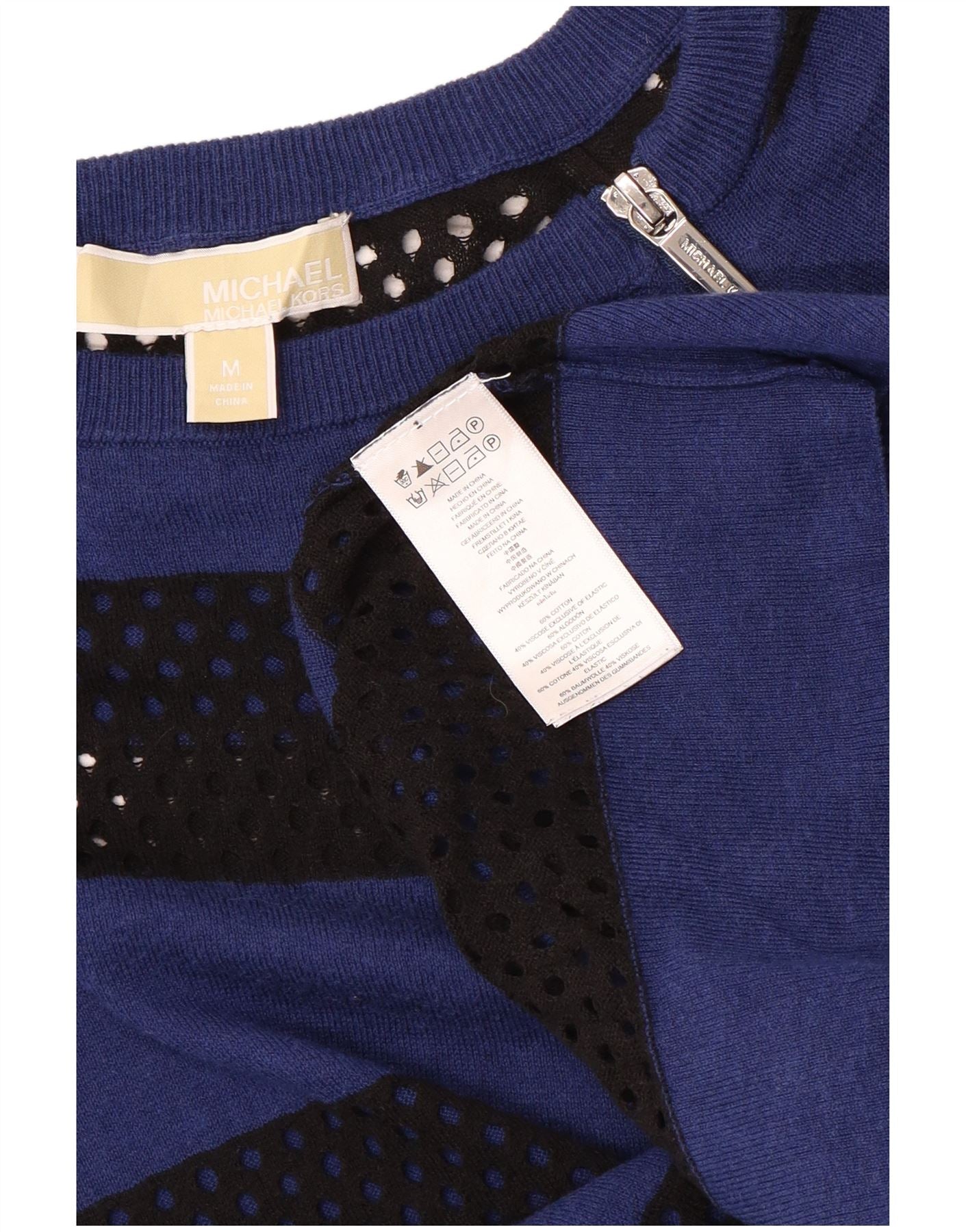 MICHAEL KORS Womens Boat Neck Jumper Sweater UK 12 Medium Blue Striped