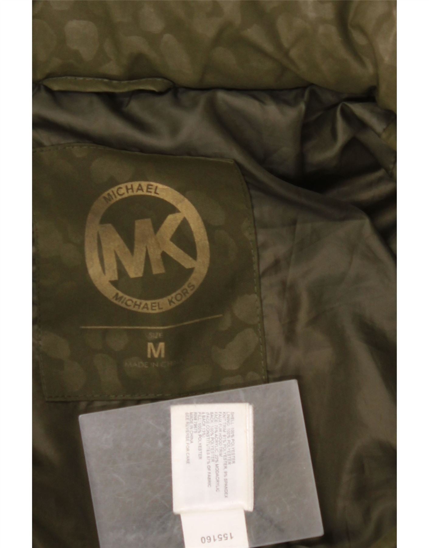 MICHAEL KORS Womens Hooded Padded Coat UK 14 Medium Khaki Animal Print
