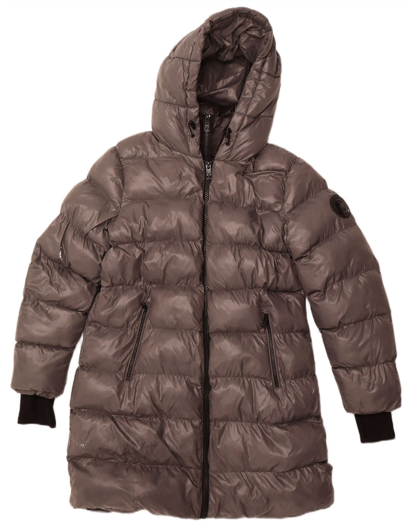 MICHAEL KORS Womens Oversized Hooded Padded Coat UK 16 Large Grey Nylon