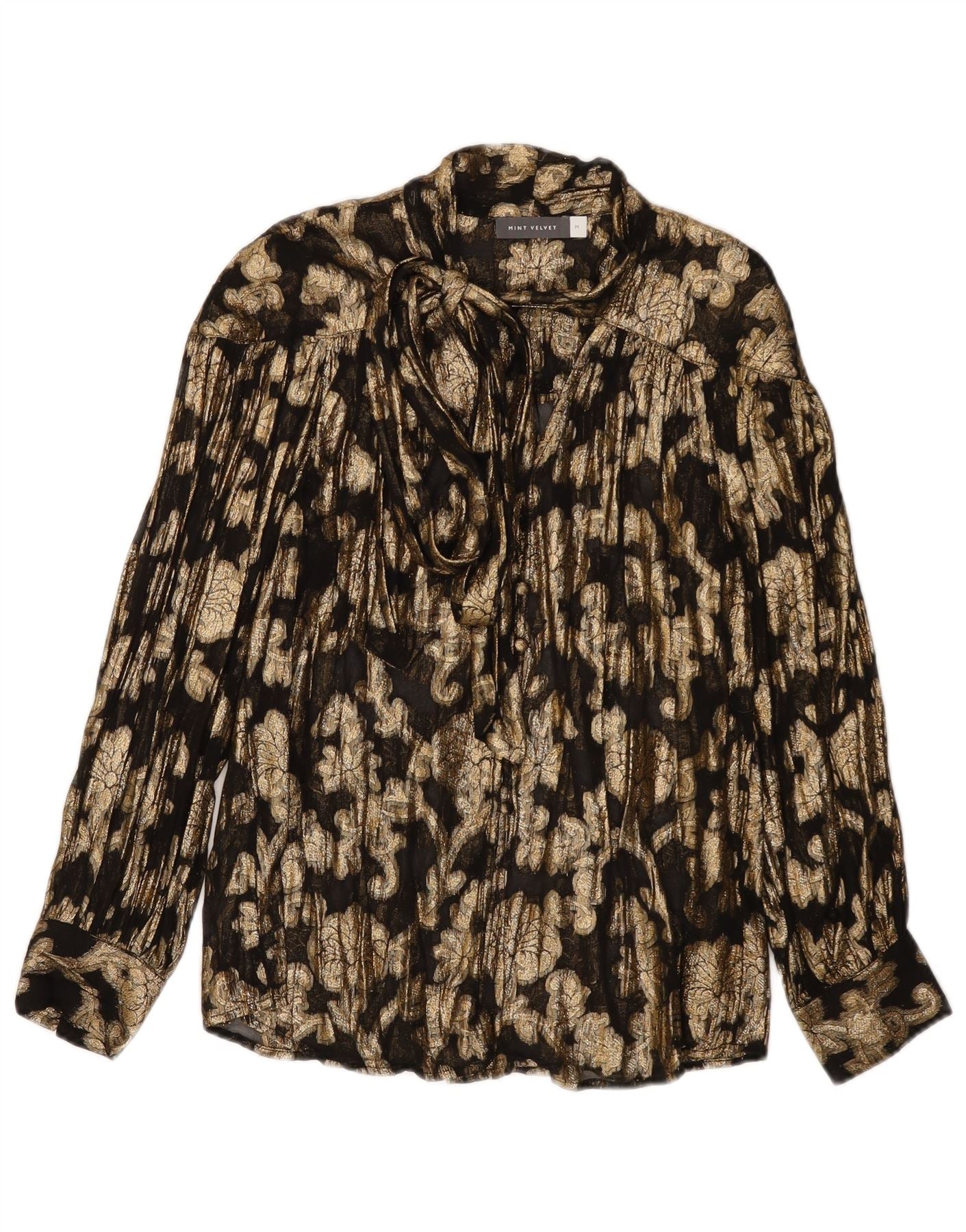 MINT VELVET Womens Front Tie Shirt Blouse UK 14 Medium Gold Floral Viscose