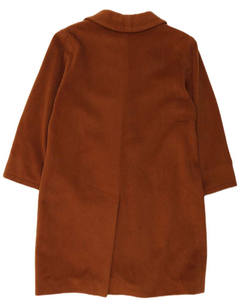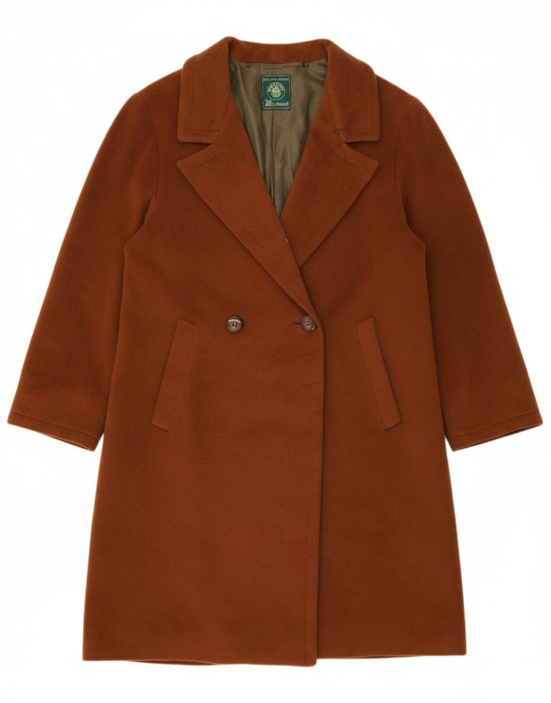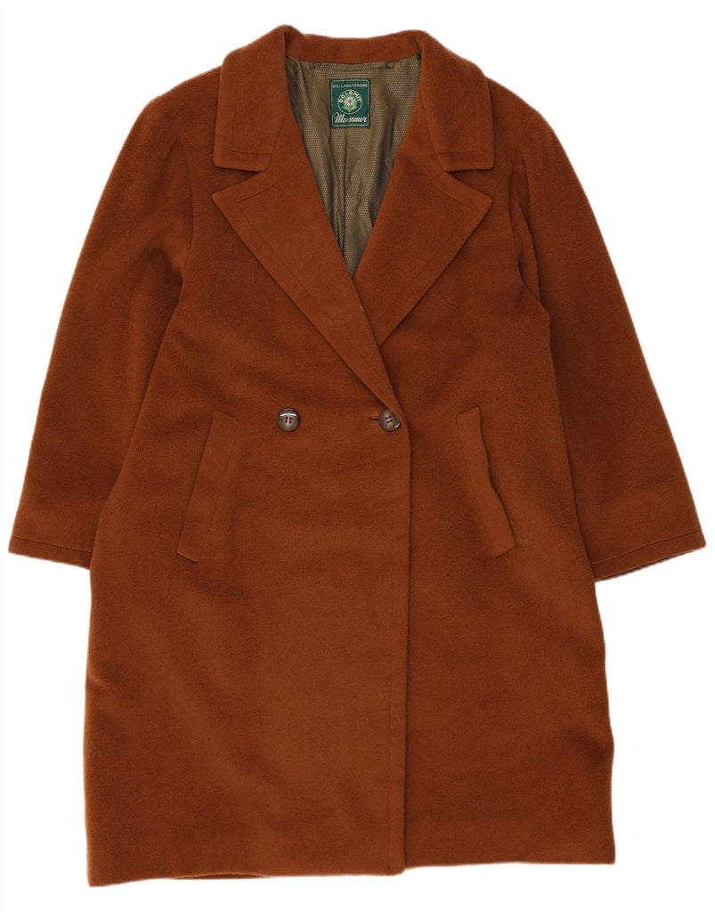 MOESSMER Womens Double Breasted Coat UK 14 Large Brown Virgin Wool
