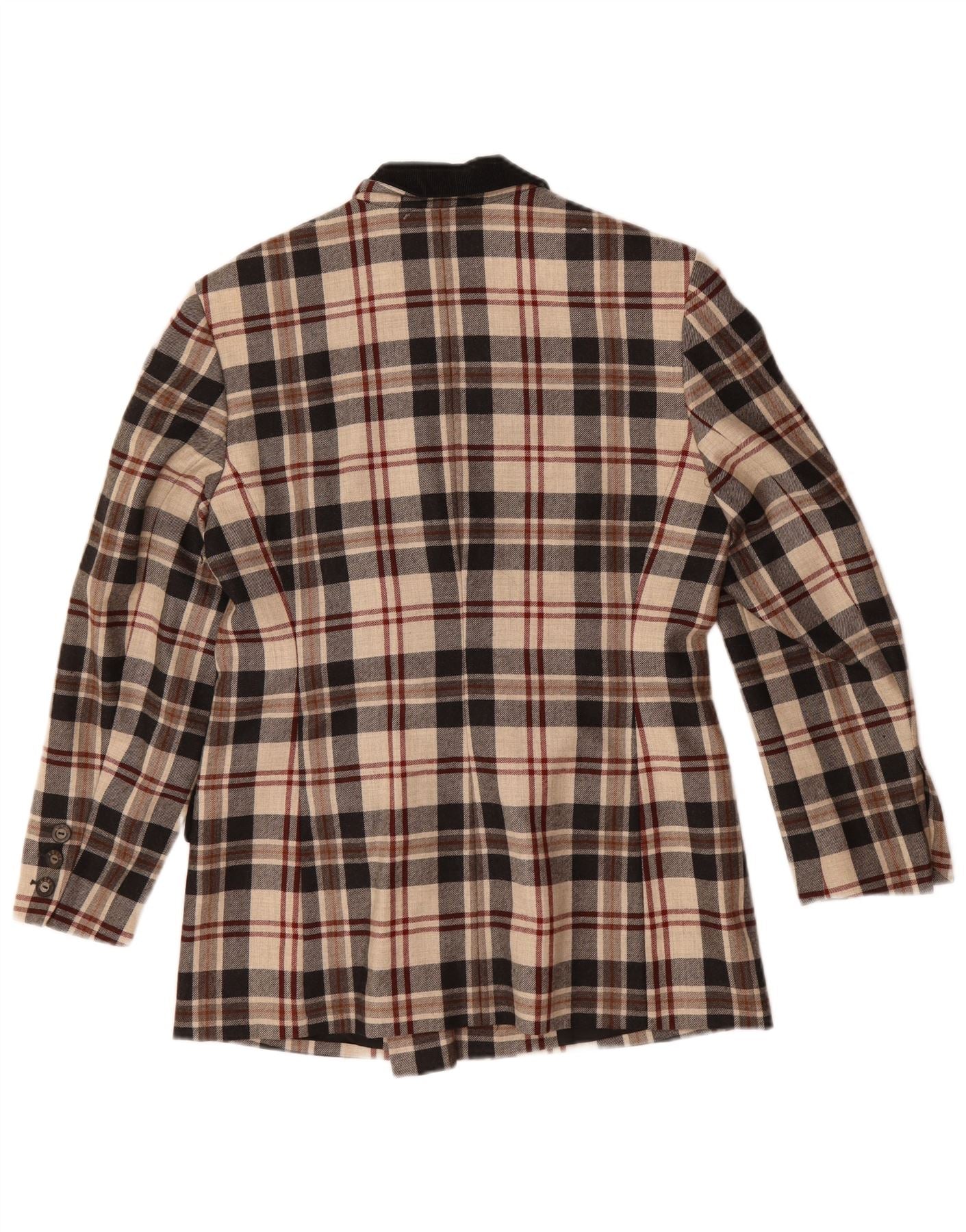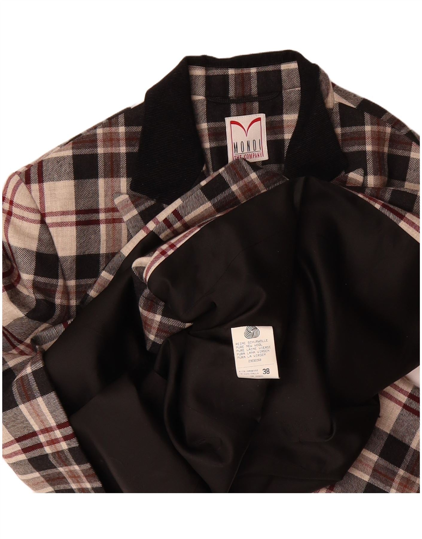 - AI Description: This Mondi womens 2 piece suit is crafted from pure new wool, offering a luxurious woven texture. It features a sophisticated plaid pattern in multicoloured tones of beige, black, and brown. The double breasted design with a collared neckline exudes classic style. It fastens with six buttons, adding a refined detail. Long sleeves complete the tailored silhouette. Pockets provide practical elegance. The regular fit ensures comfortable wear.