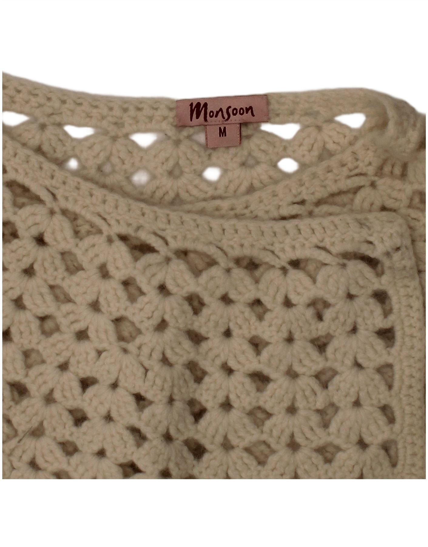 MONSOON Girls Crochet Poncho Shawl 12-13 Years Medium Off White Bohemian