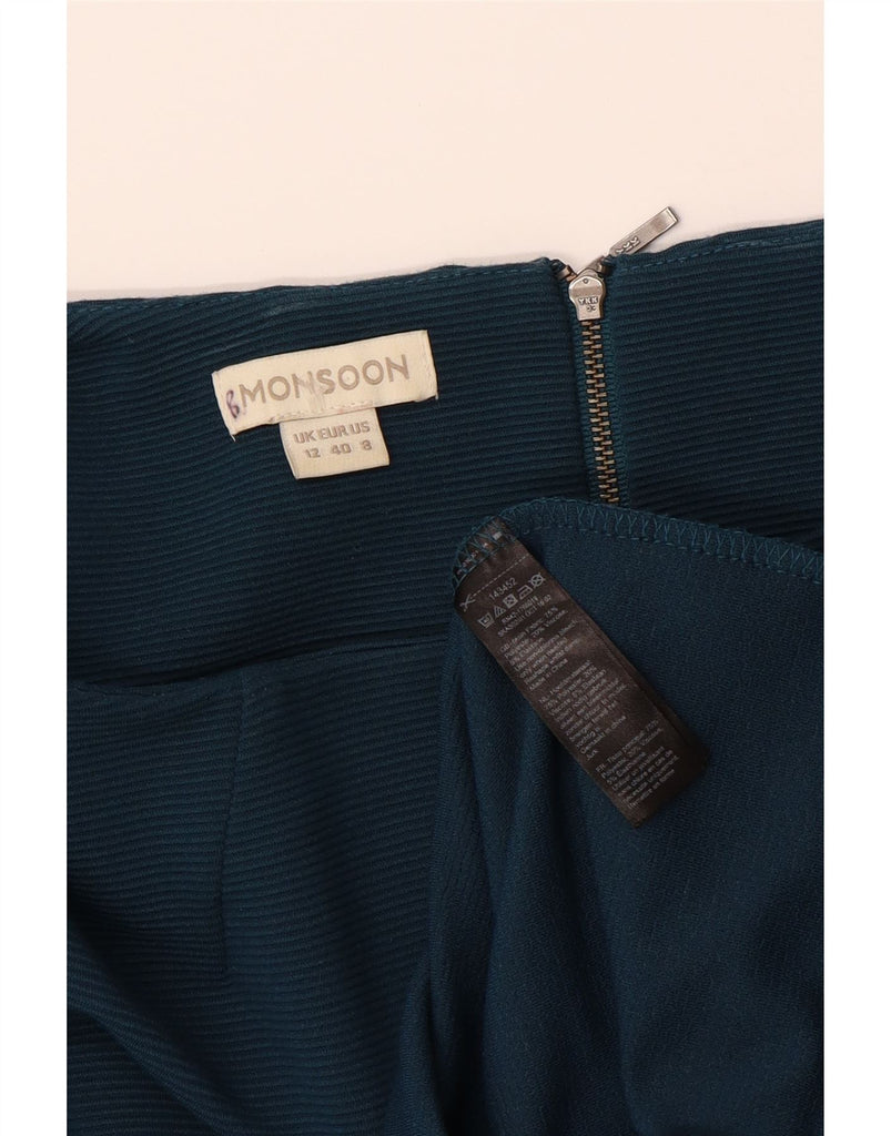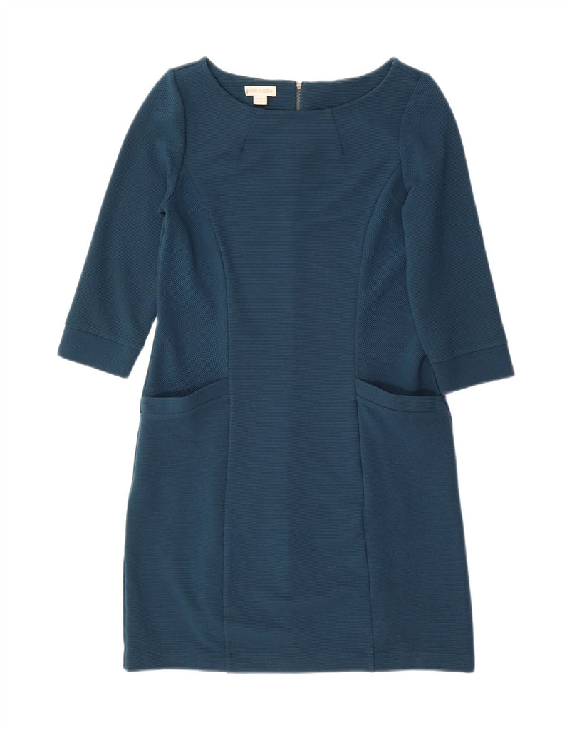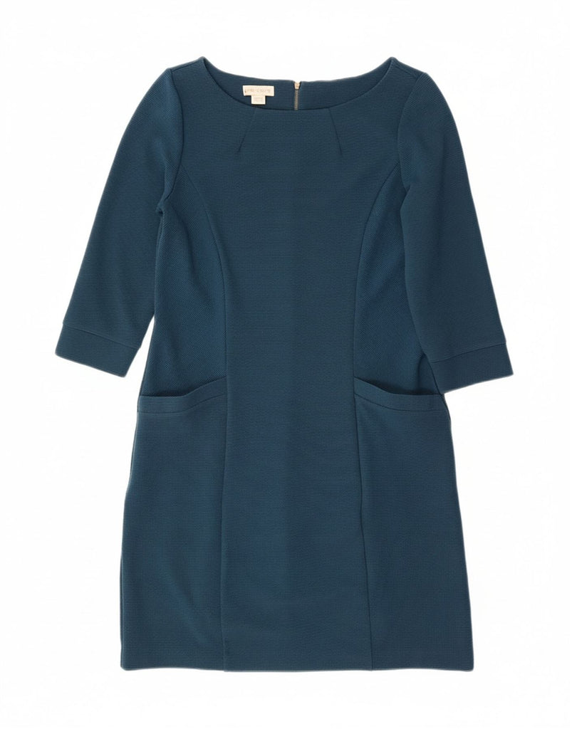 MONSOON Womens 3/4 Sleeve Sheath Dress UK 12 Medium Navy Blue Pinstripe