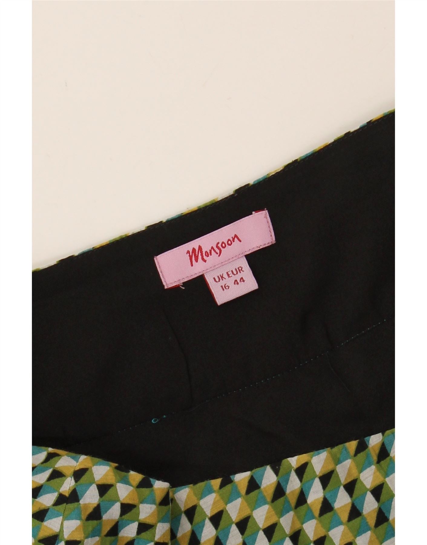 MONSOON Womens A-Line Skirt UK 16 Large W37 Black Geometric Cotton