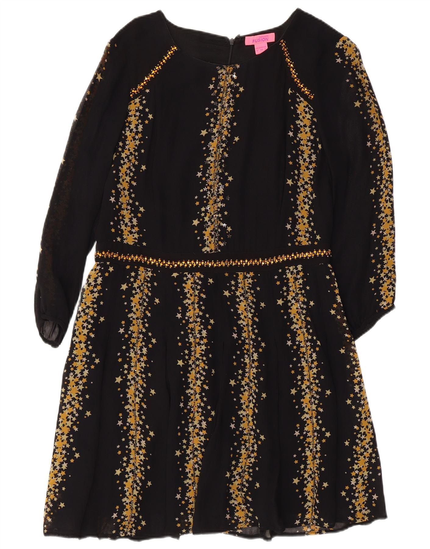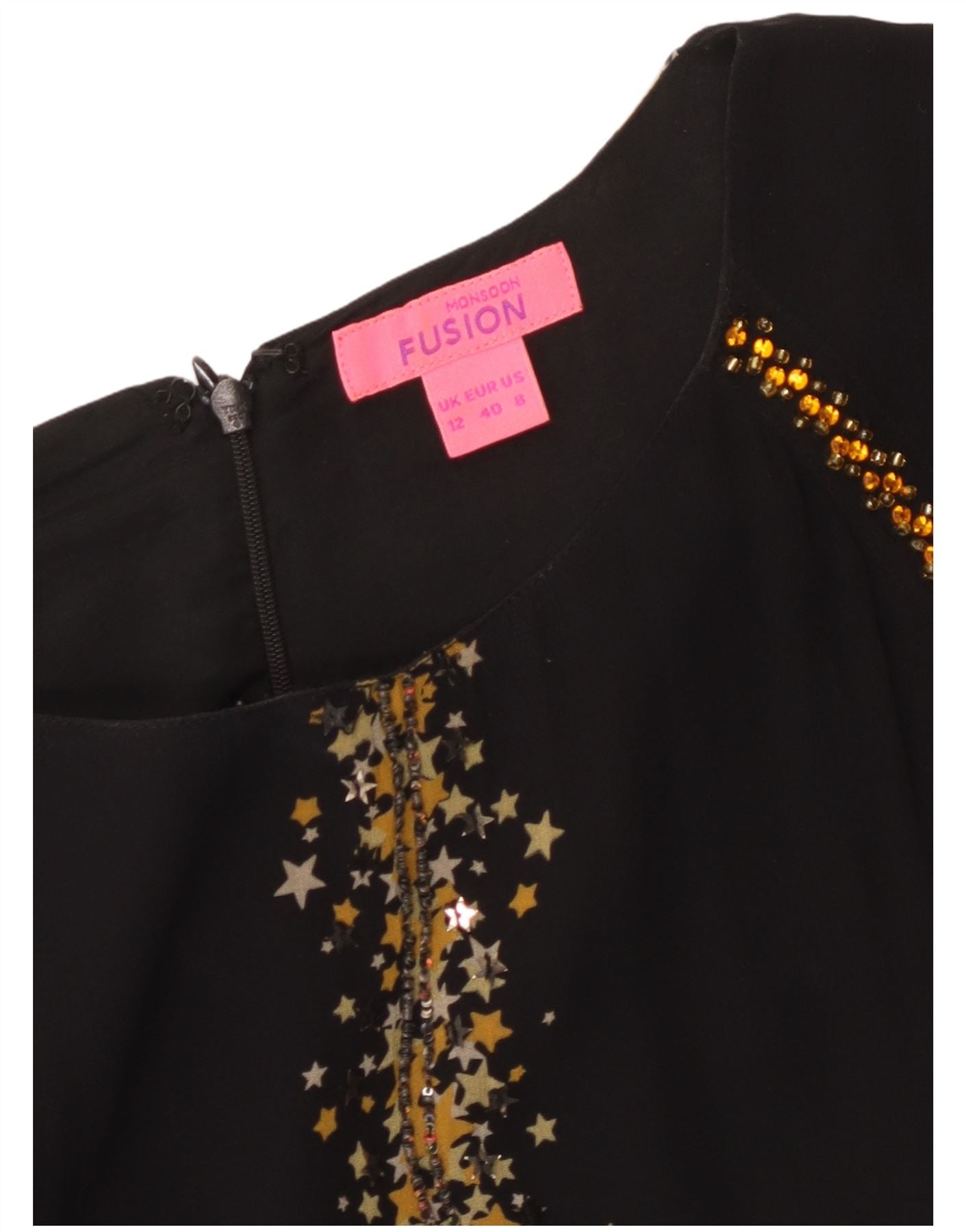MONSOON Womens Abstract Pattern 3/4 Sleeve A-Line Dress UK 12 Medium Black