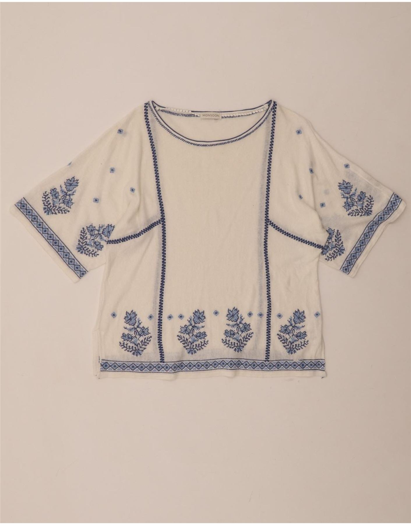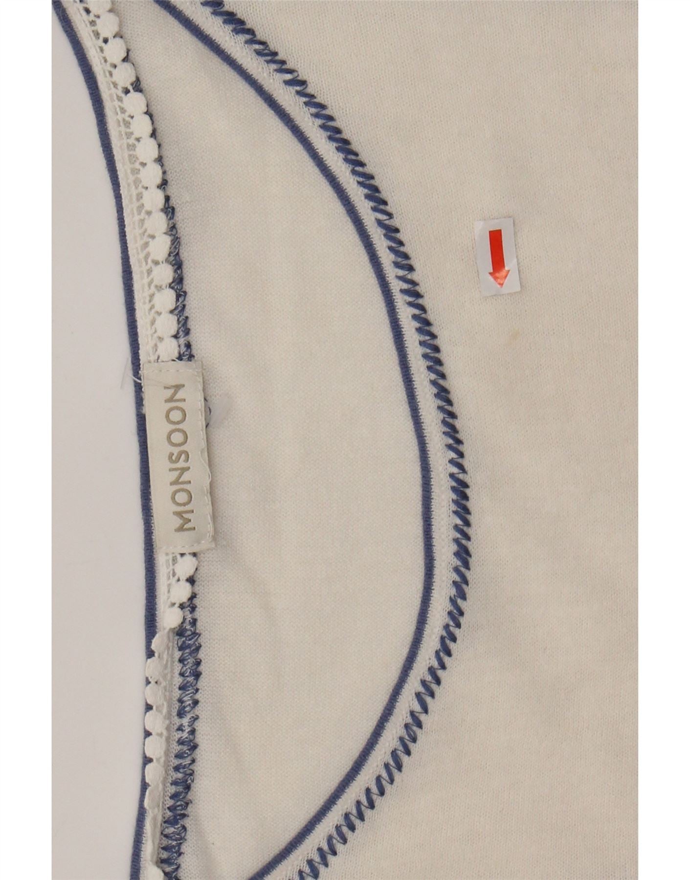MONSOON Womens Blouse Top UK 16 Large Off White Floral Linen