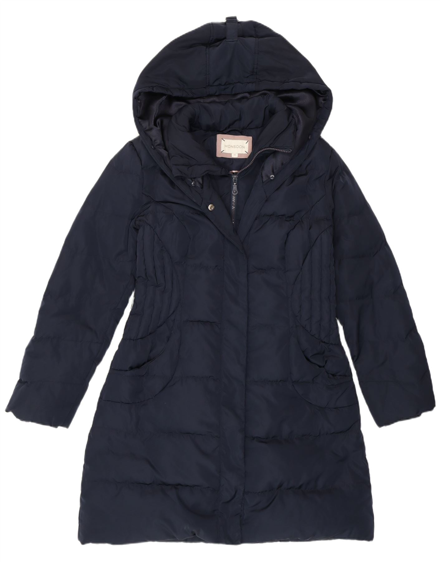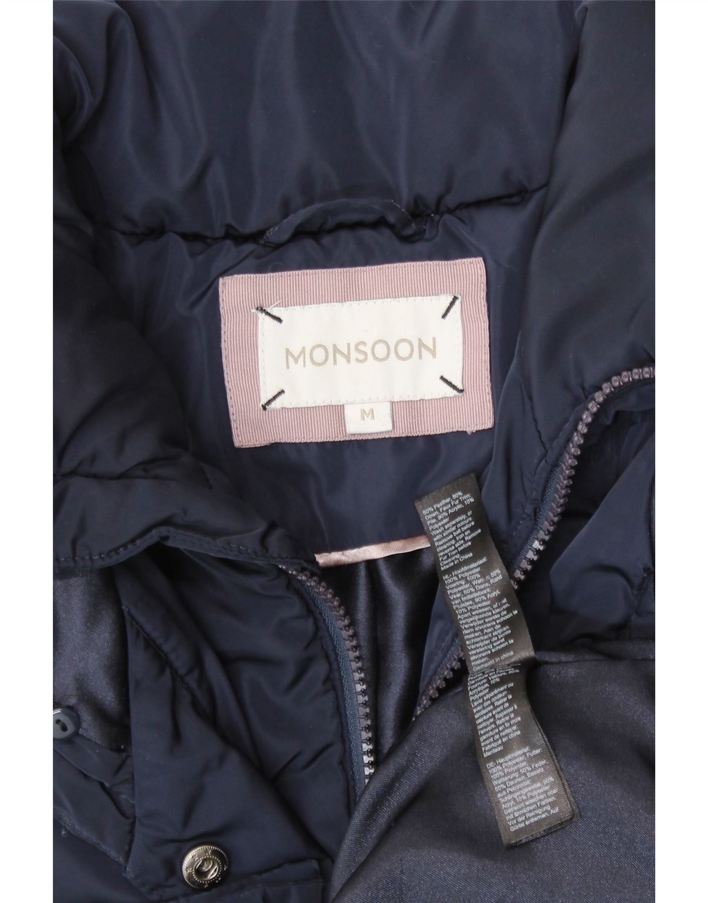 MONSOON Womens Hooded Padded Coat UK 14 Medium Navy Blue Polyester