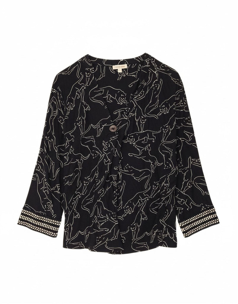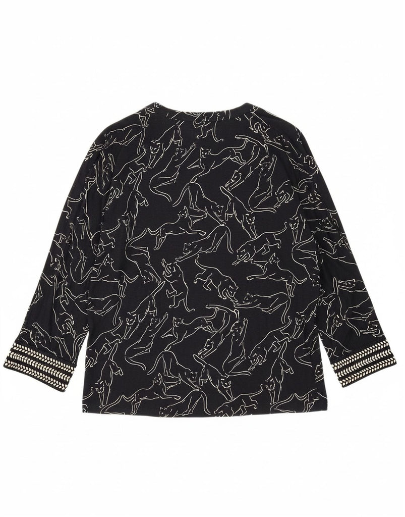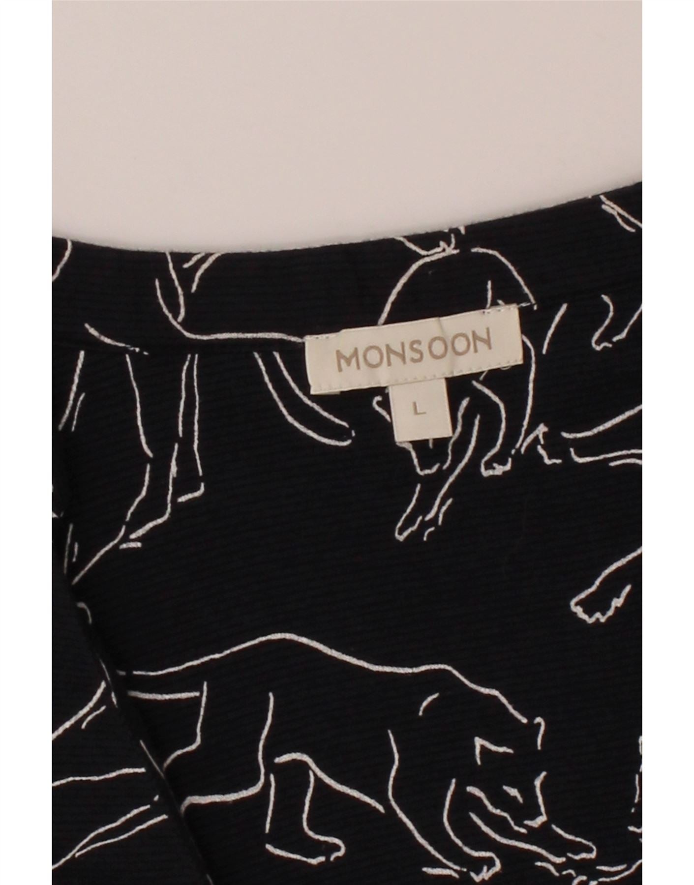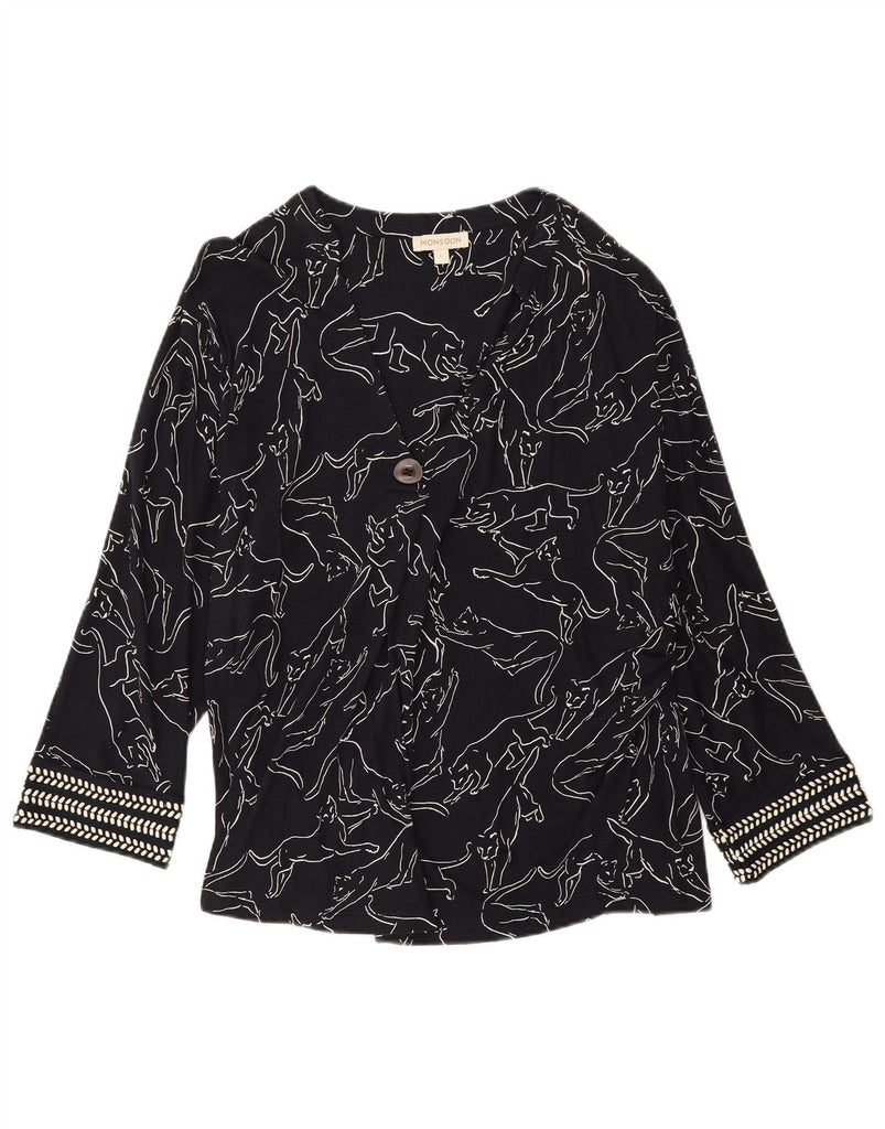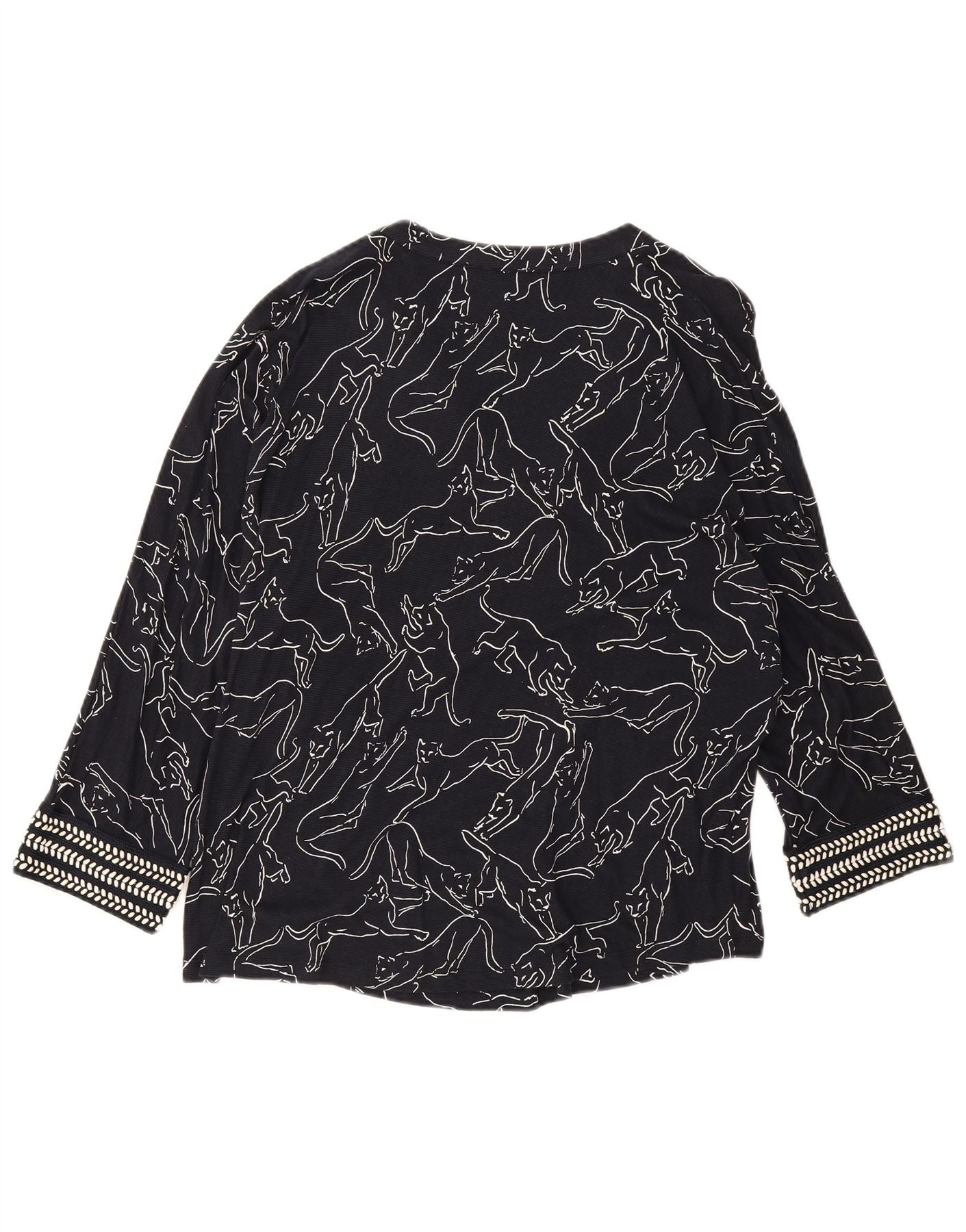MONSOON Womens Oversized Top 3/4 Sleeve UK 16 Large Navy Blue Animal Print