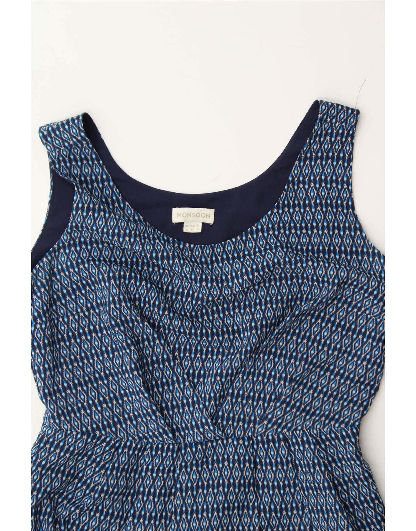 MONSOON Womens Sheath Dress UK 10 Small Navy Blue Argyle/Diamond