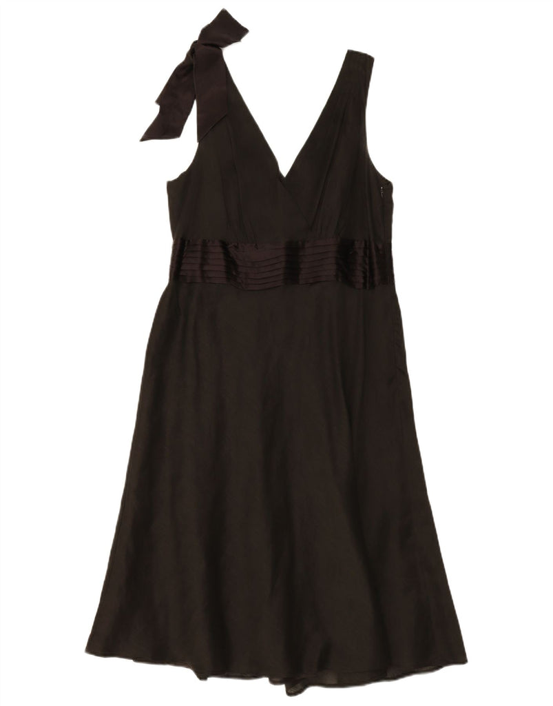MONSOON Womens Sleeveless A-Line Dress UK 14 Medium Brown Linen