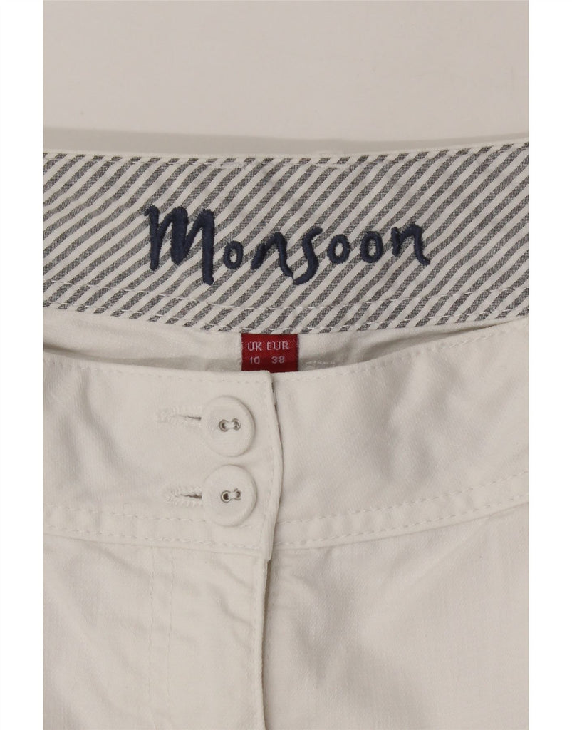 MONSOON Womens Straight Capri Trousers UK 10 Small W29 L21 White Cotton