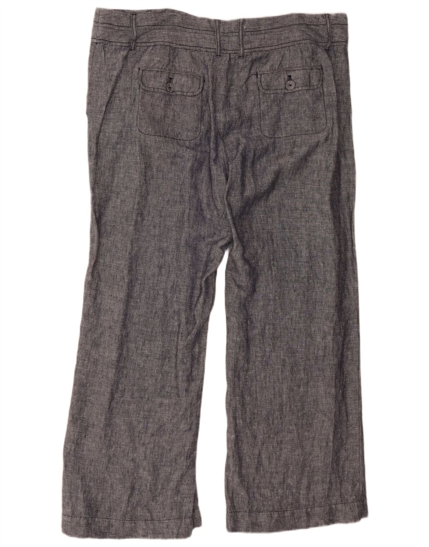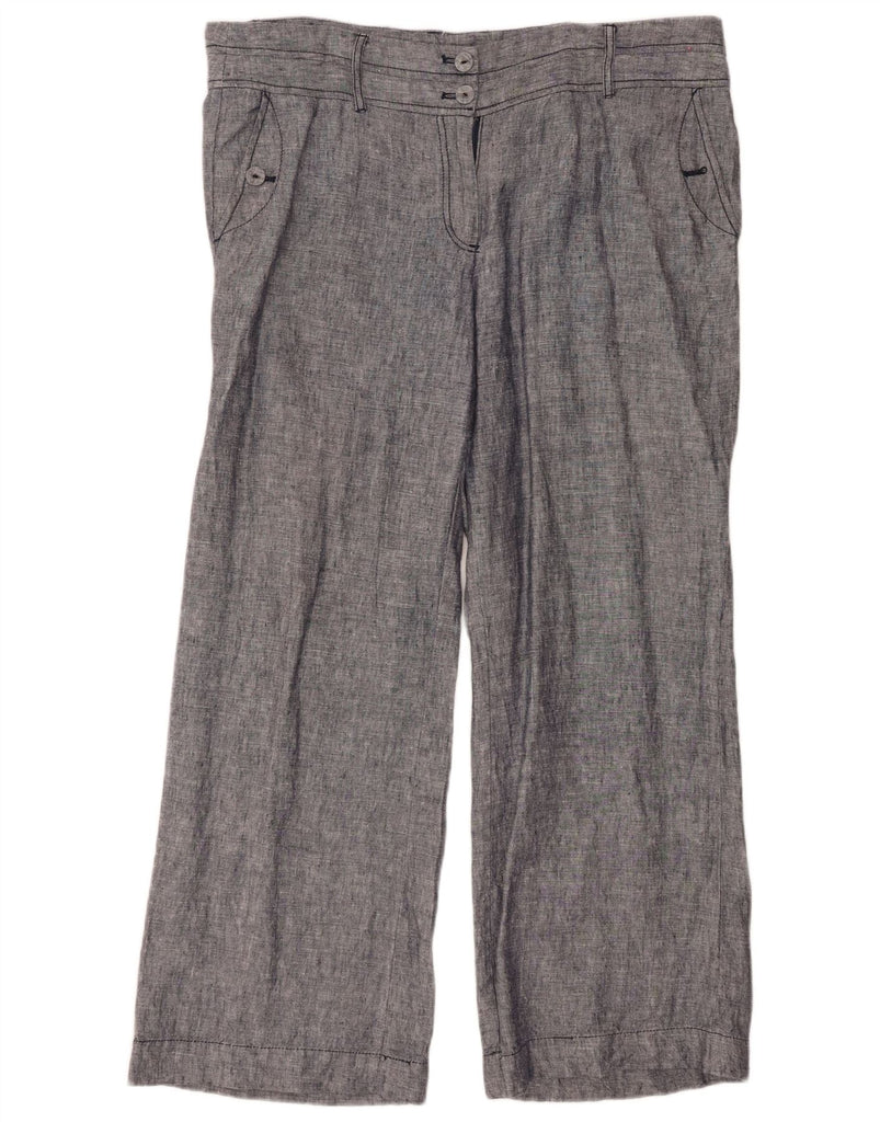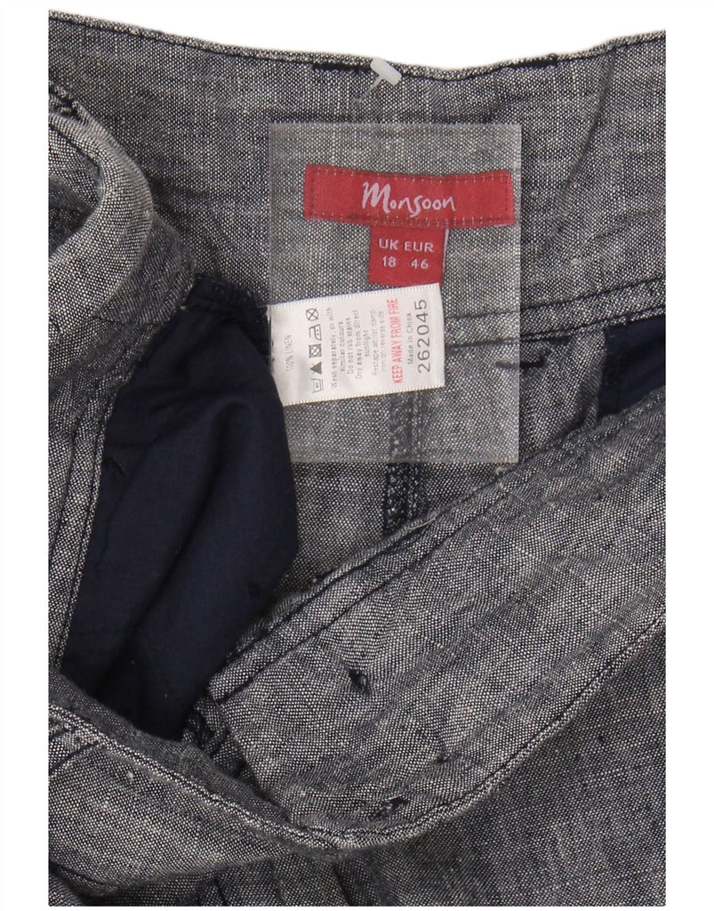 MONSOON Womens Straight Casual Trousers UK 18 XL W40 L30 Navy Blue Linen